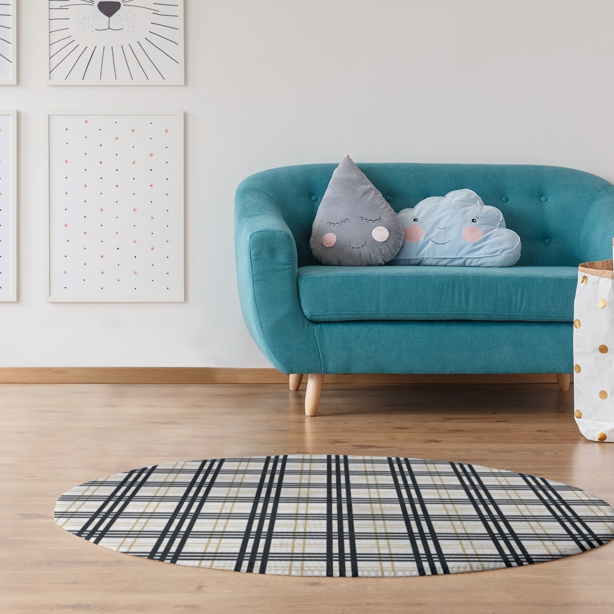 Detroit Football Luxury Plaid Area Rug