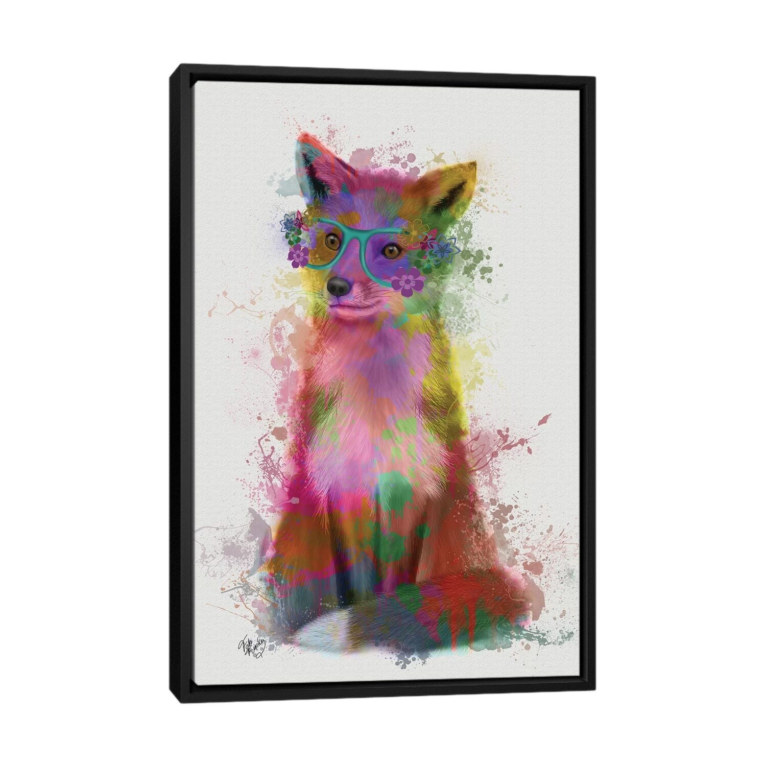 iCanvas "Rainbow Splash F0x I" by Fab Funky Framed