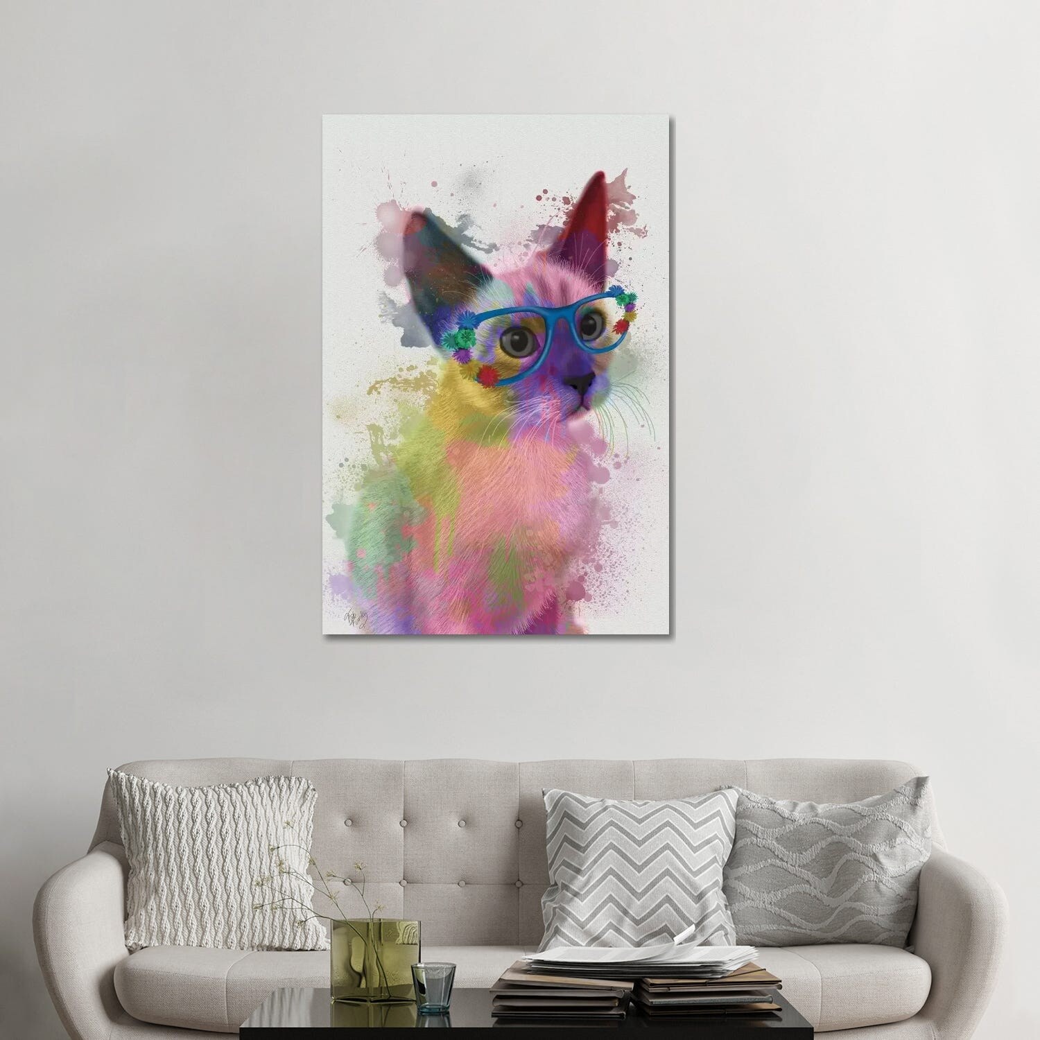 iCanvas "Rainbow Splash Cat II" by Fab Funky Canvas Print