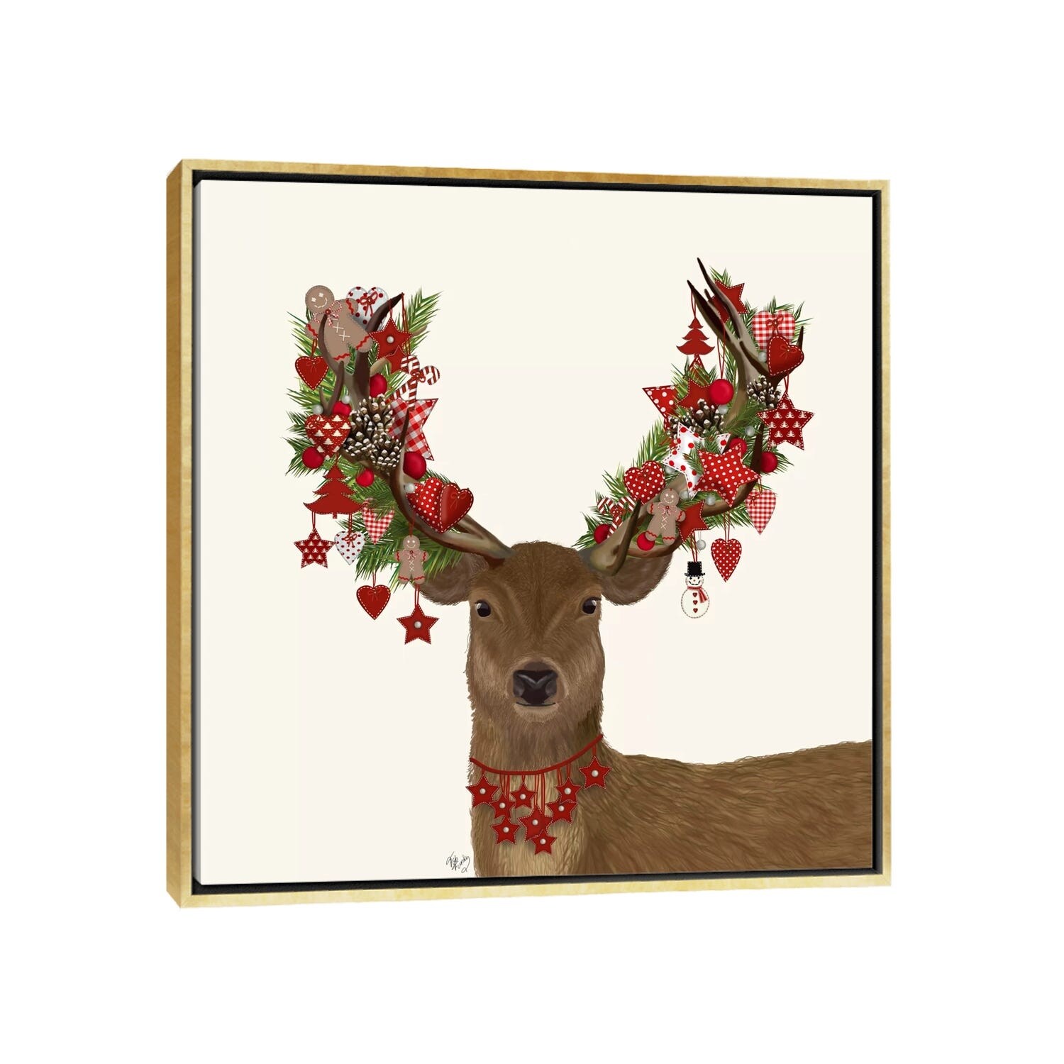 iCanvas "Deer, Homespun Wreath" by Fab Funky Framed Canvas Print
