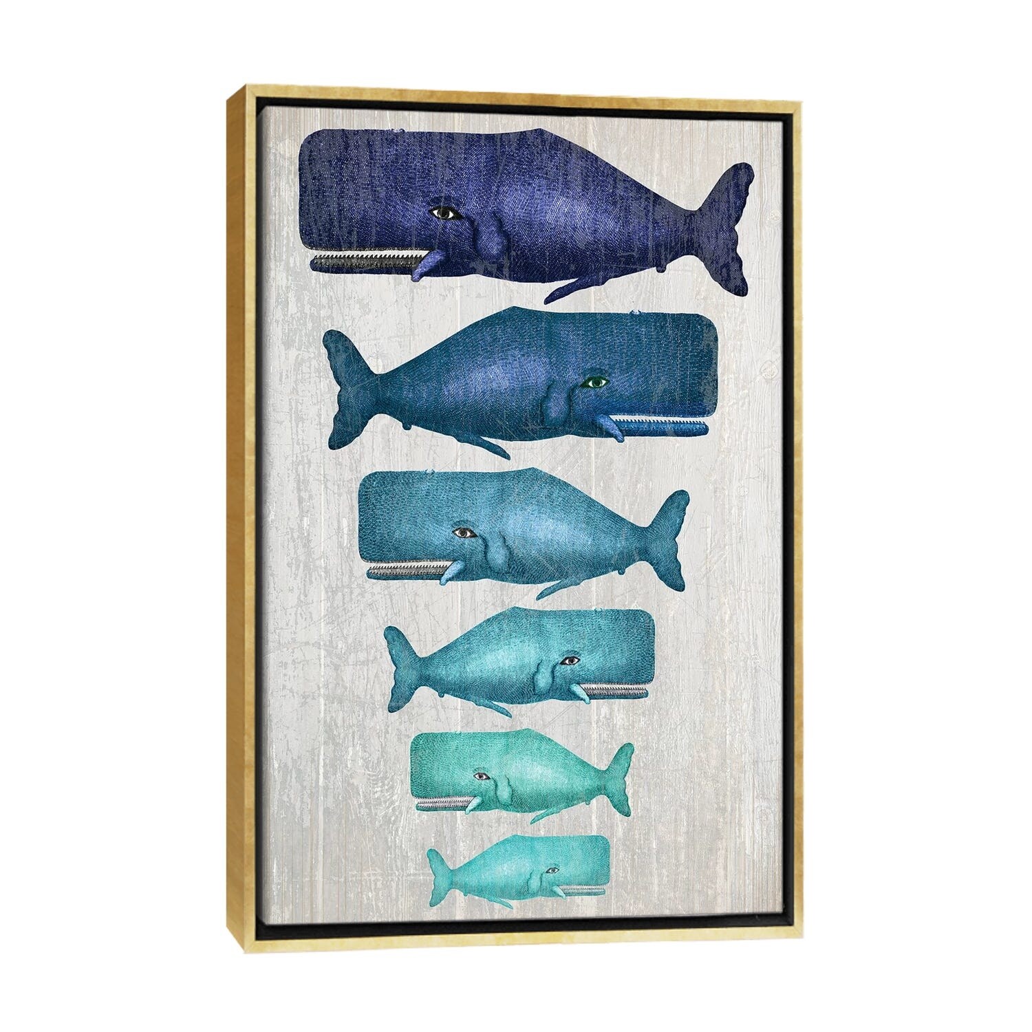 iCanvas "Whale Family Blue on White" by Fab Funky Framed Canvas Print