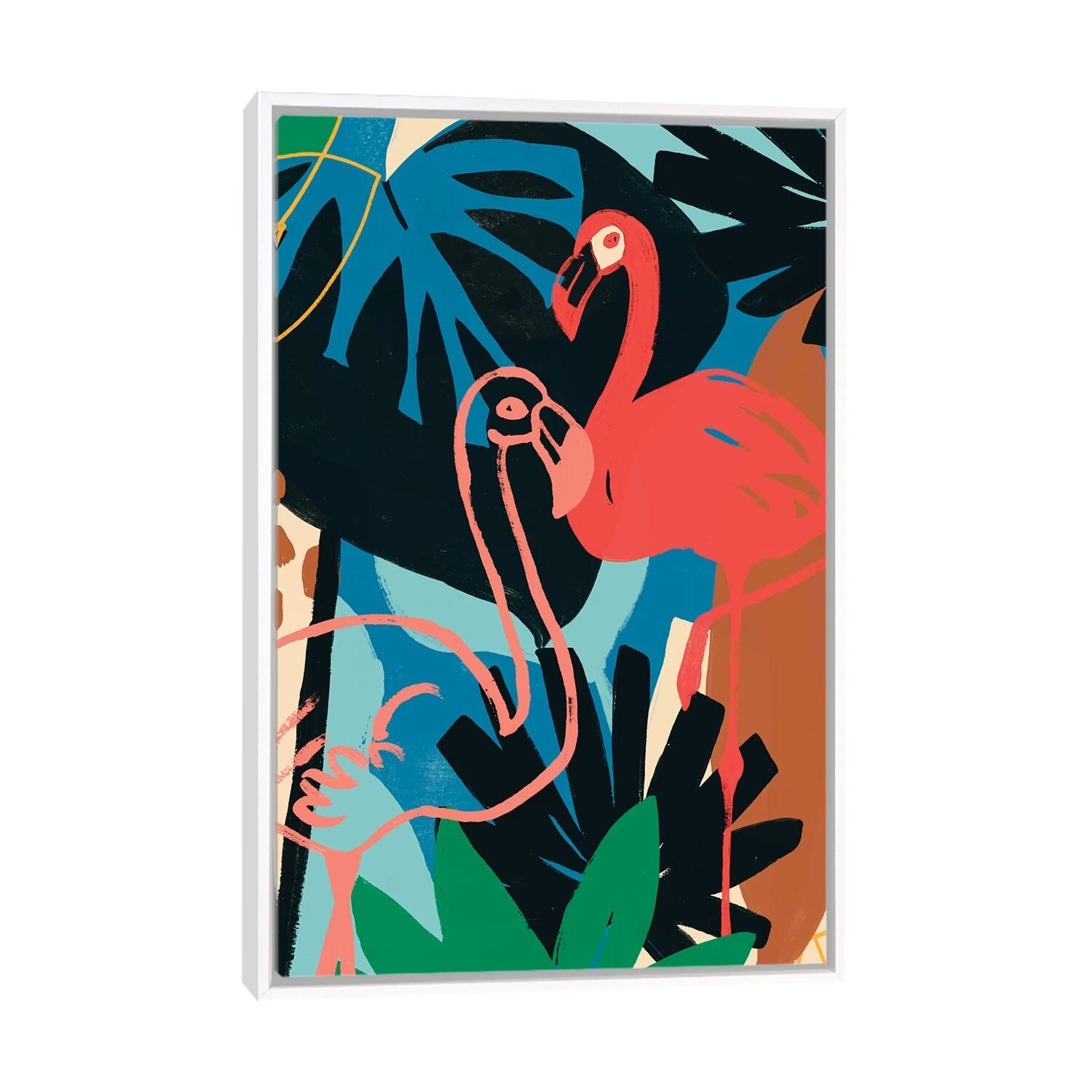 iCanvas "Flamingos In A Garden II" by Fab Funky Framed Canvas Print
