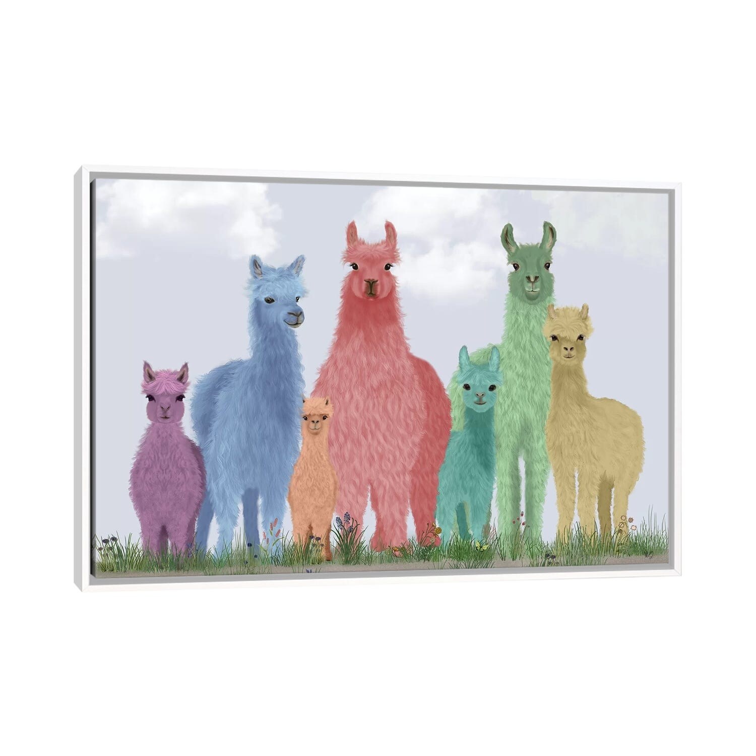 iCanvas "Llama Pastel Family" by Fab Funky Framed Canvas Print