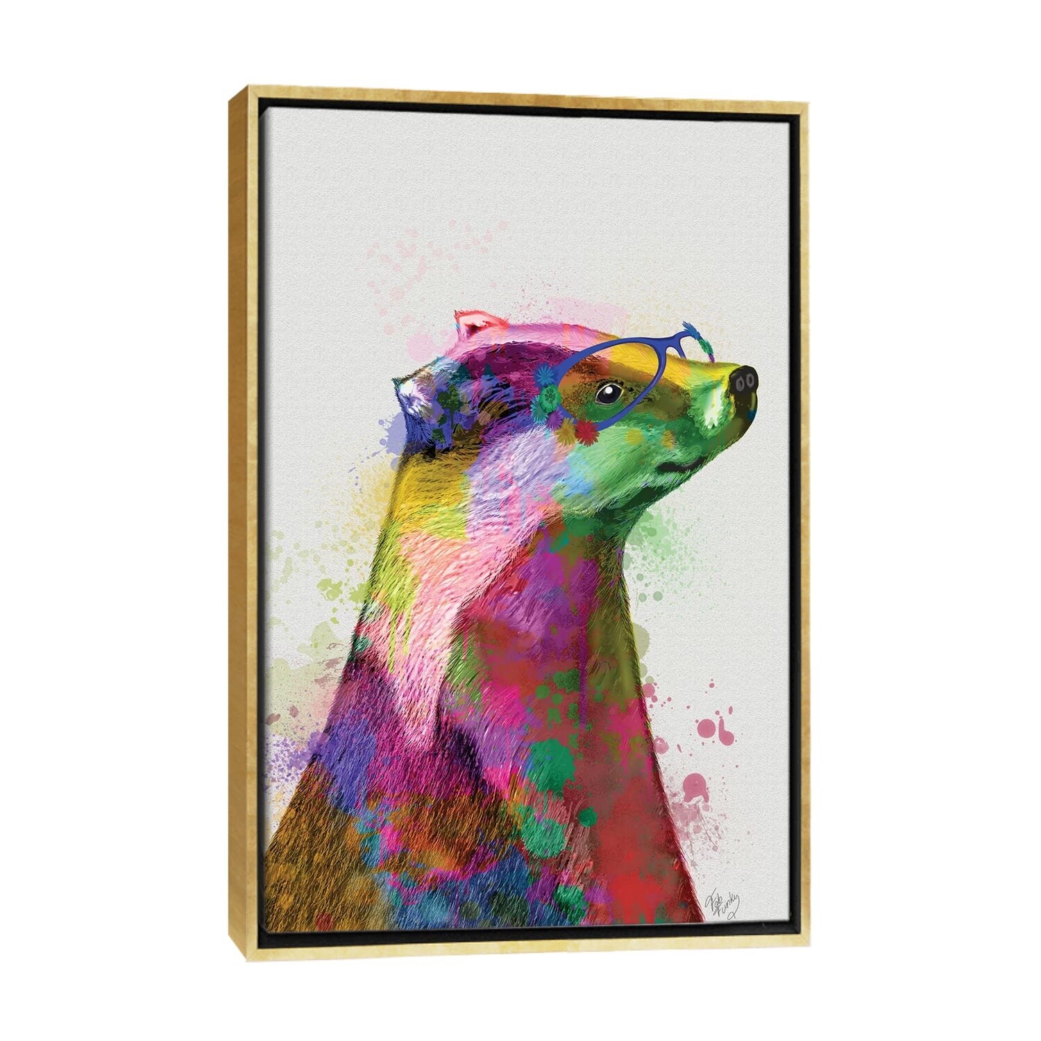 iCanvas "Badger Rainbow Splash 2" by Fab Funky Framed