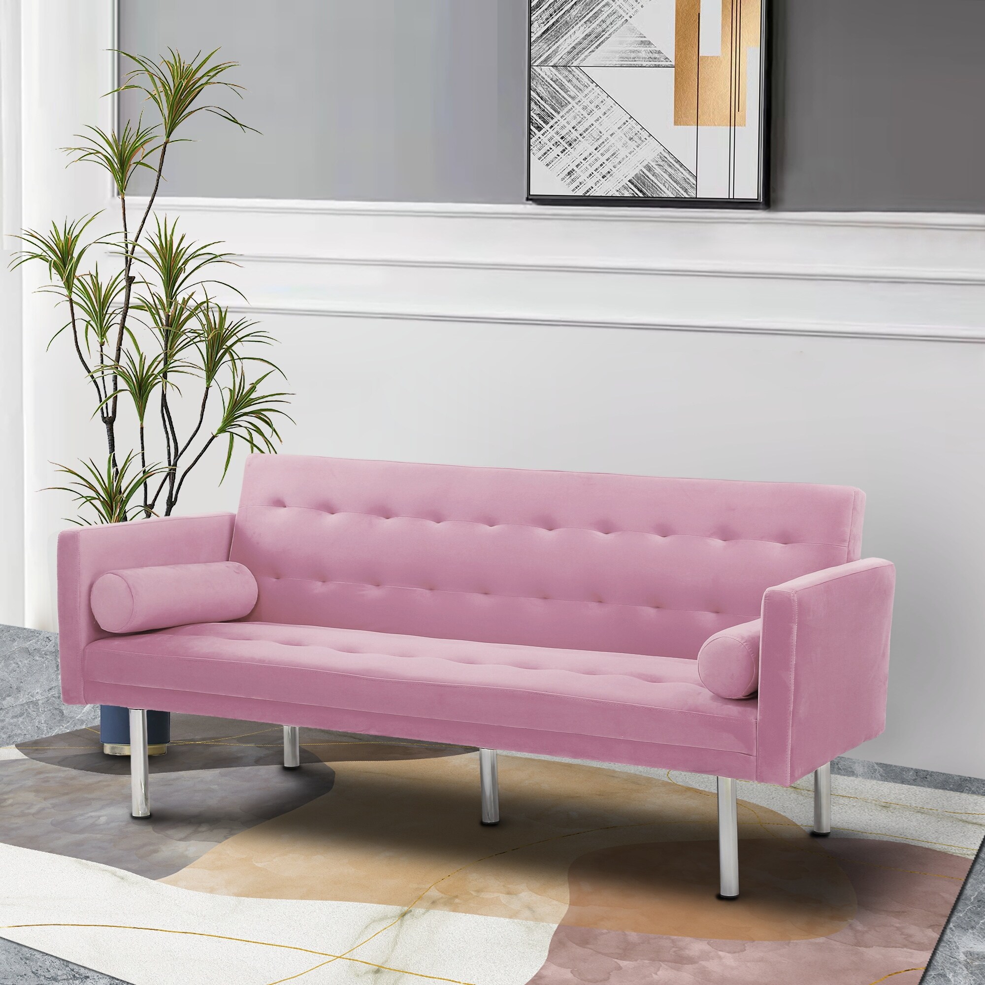Futon Couch Sofa Bed, Fabric Sleeper Futons Convertible Loveseat Furniture with Pillows for Living Room