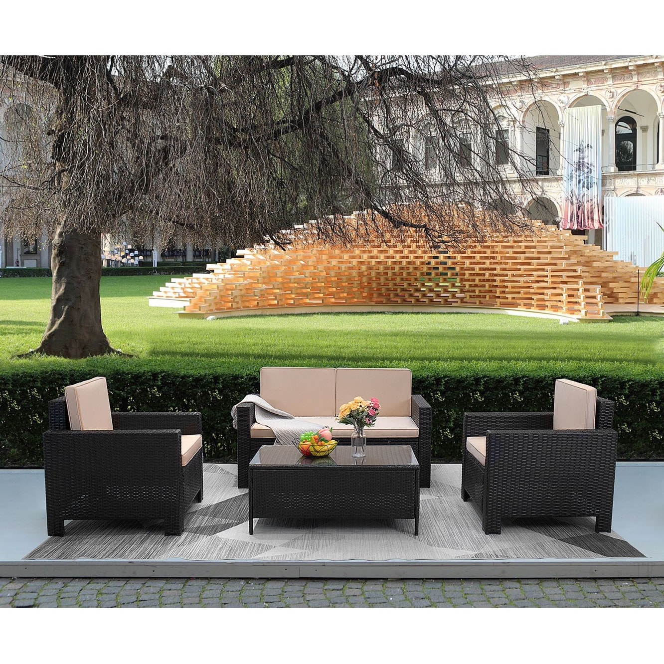 Homall Rattan Steel/ PE Rattan 4-piece Outdoor Patio Furniture Set