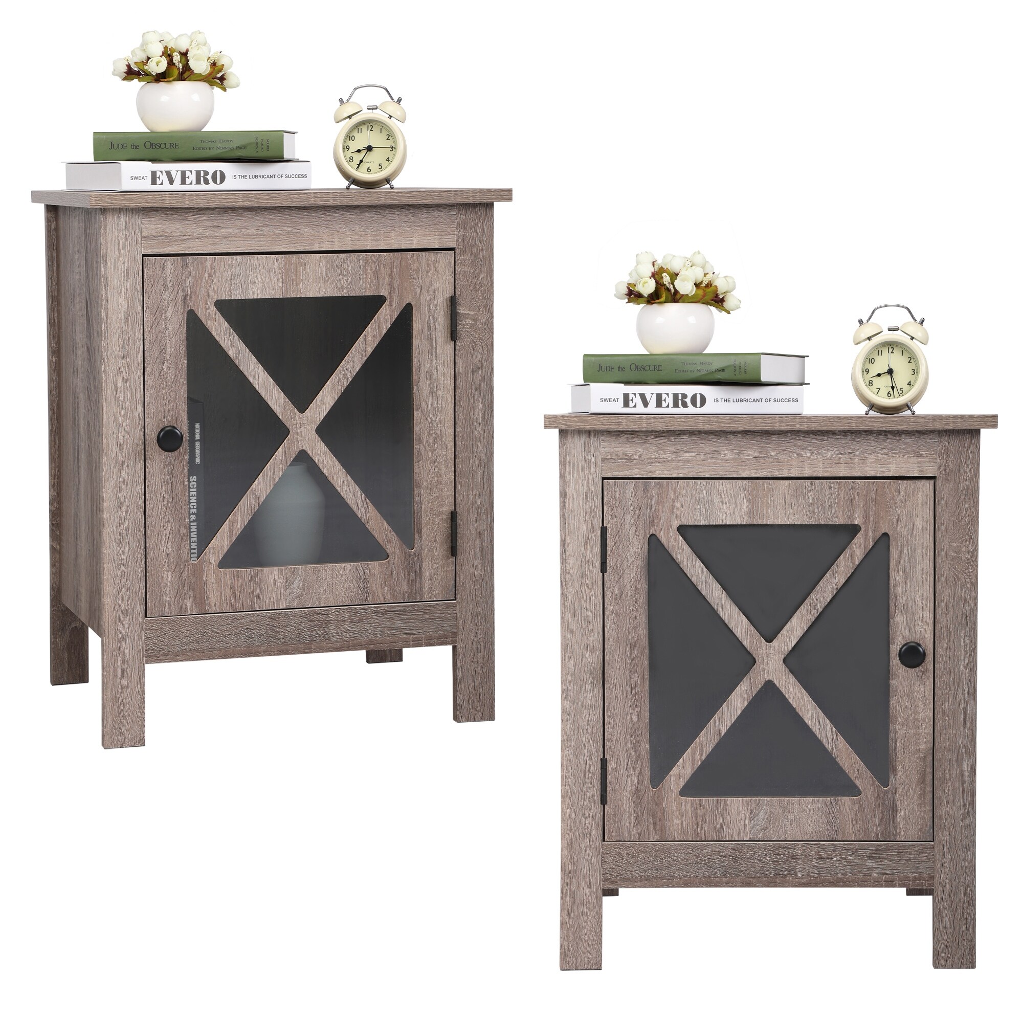 Set of 2-Piece X-Shaped Door Bedside Table, Modern Style Bedside Furniture, Suitable for Rooms