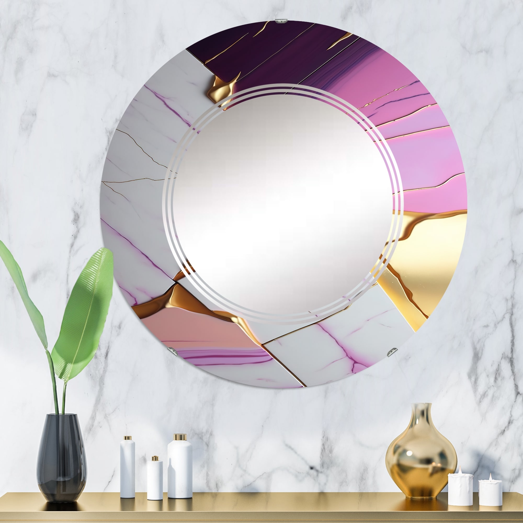 Designart 'Abstract Geode Pink IV' Printed Abstract Marble Wall Mirror
