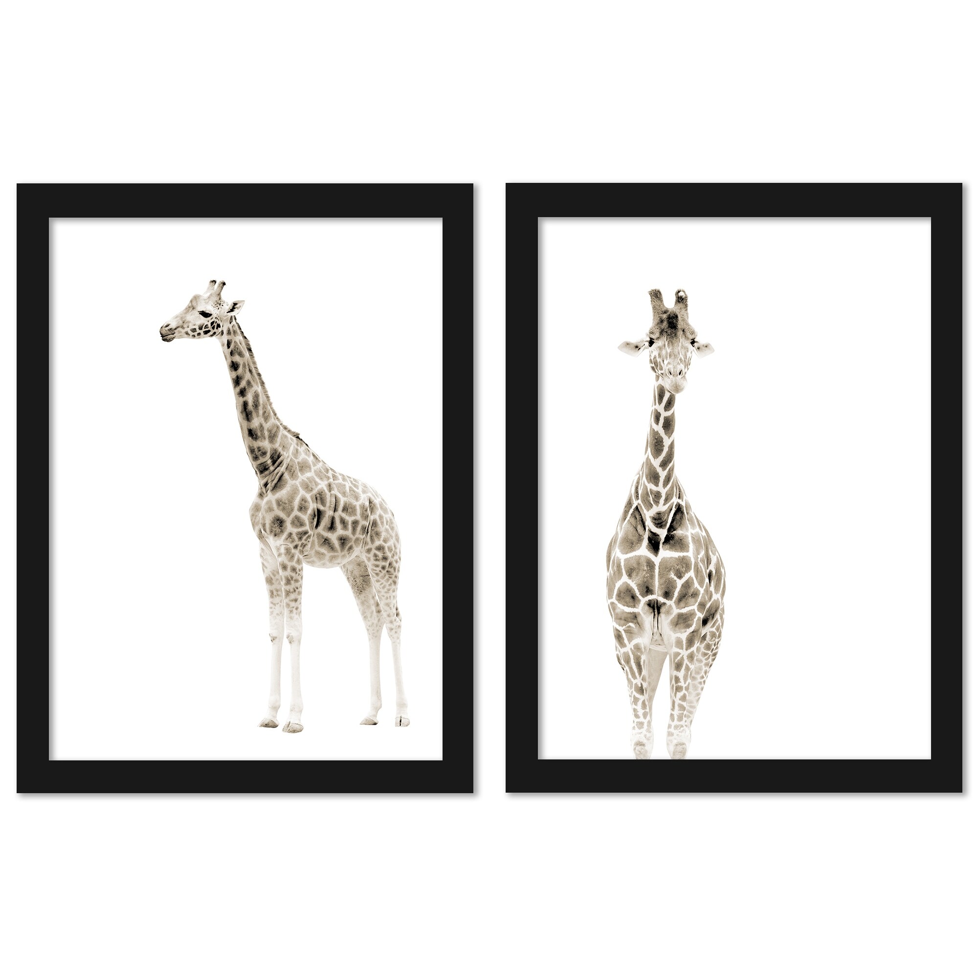 Beige Giraffe by & Wonder 2 Piece Black Framed Print Art Set