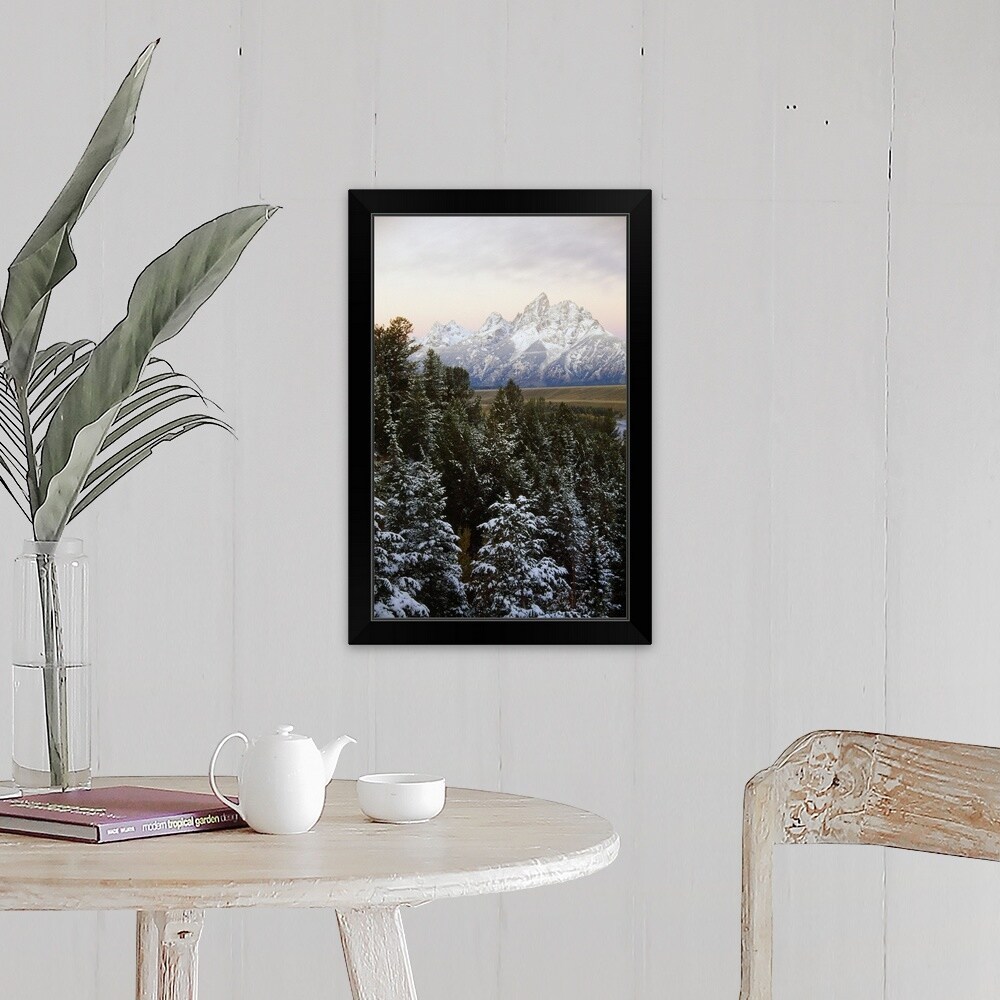 "Lodgepole Pines and Snow Grand Teton National Park WY" Black Float Frame Canvas Art