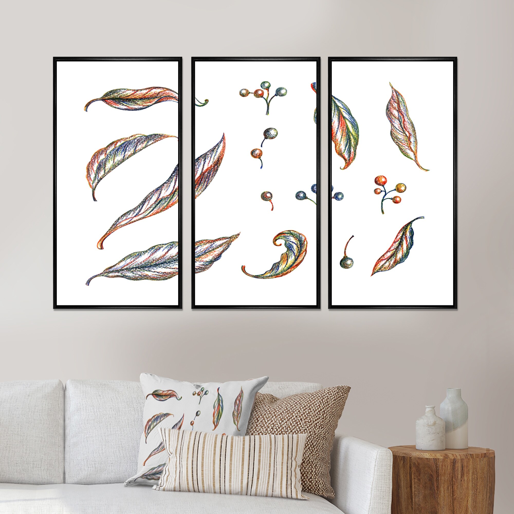 Designart "Berries and Leaves of Wild Grapes" Bohemian & Eclectic Framed Wall Art Set of 3 - 4 Colors of Frames