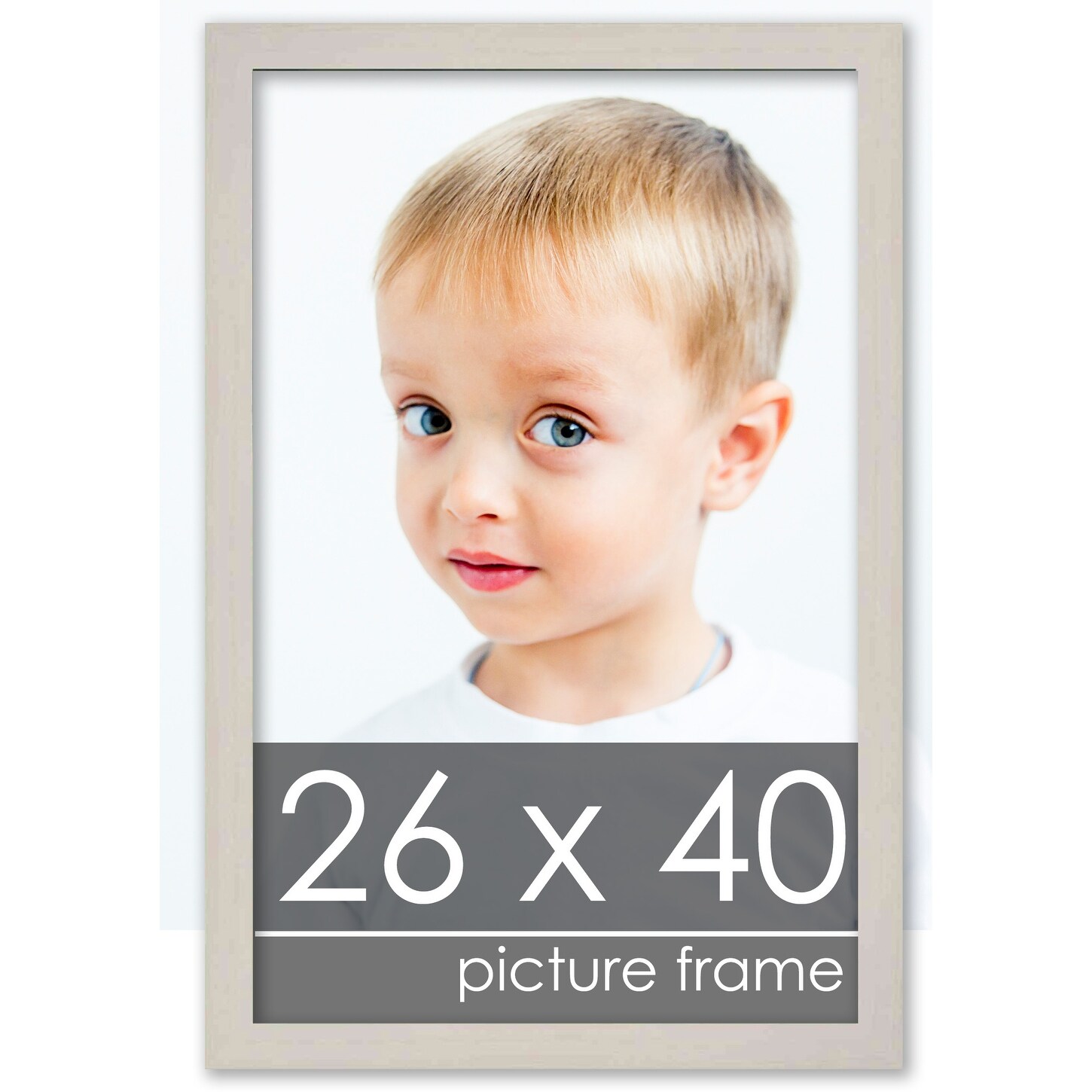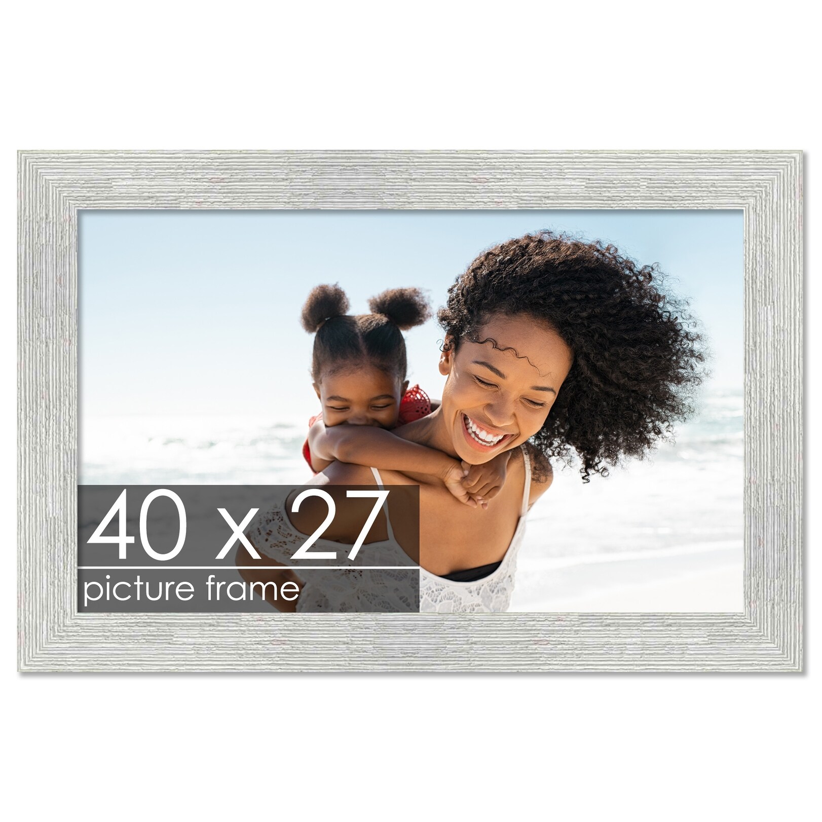 26x40 Traditional White Washed Wood Picture Frame - UV Acrylic, Foam Board Backing, & Hanging Hardware Included!
