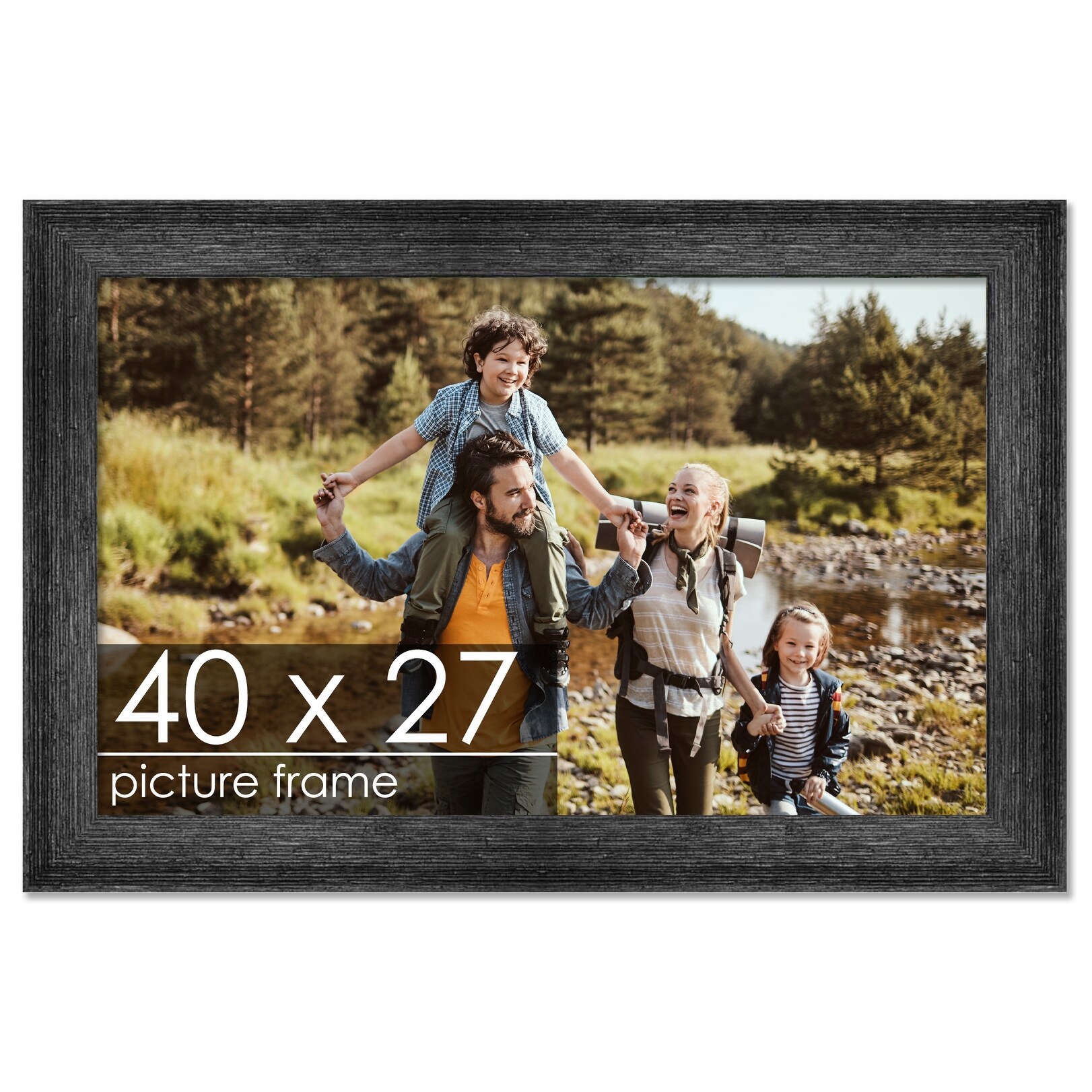 40x27 Distressed/Aged Black Wood Picture Frame - UV Acrylic, Foam Board Backing, & Hanging Hardware Included!