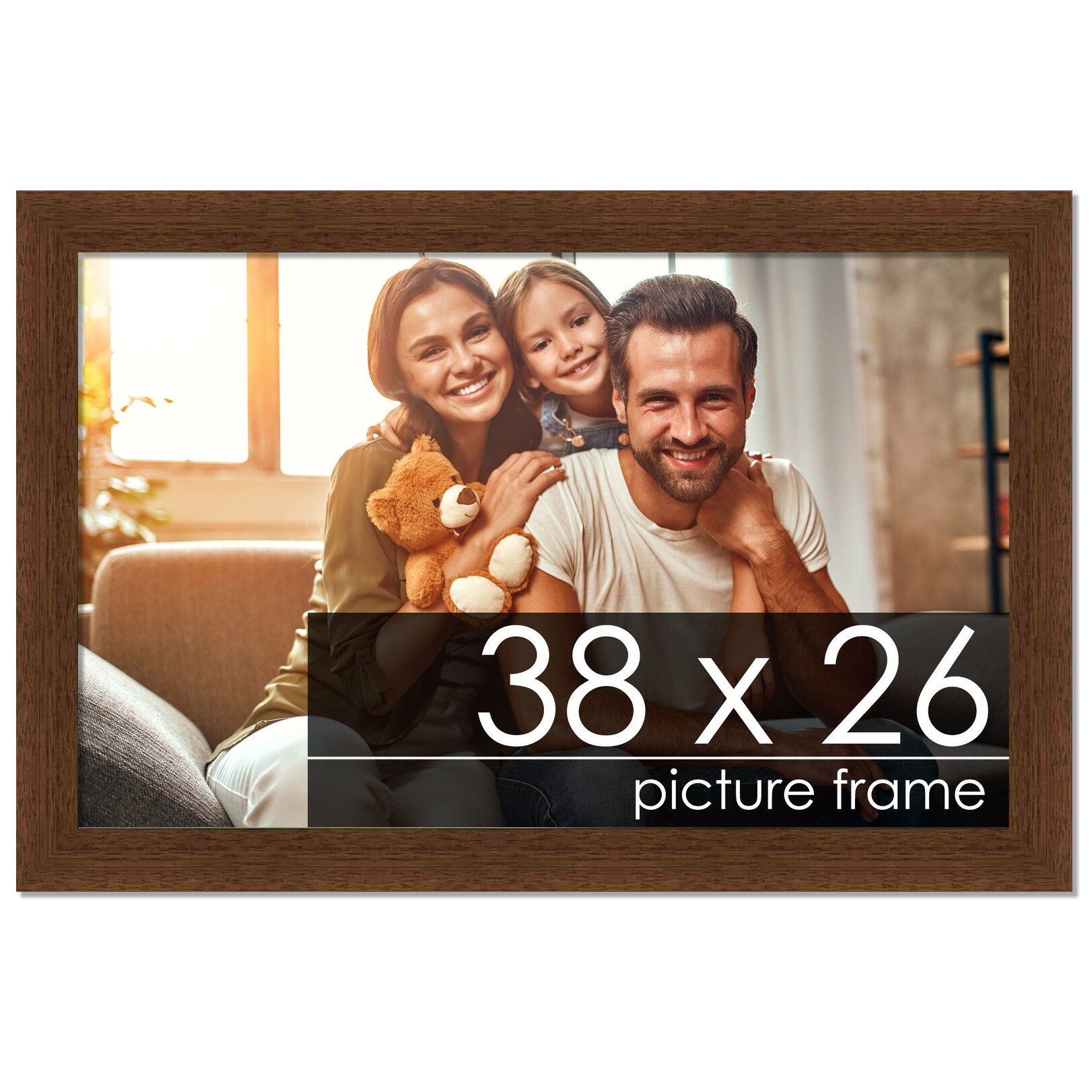 38x26 Traditional Walnut Wood Picture Frame - UV Acrylic, Foam Board Backing, & Hanging Hardware Included!
