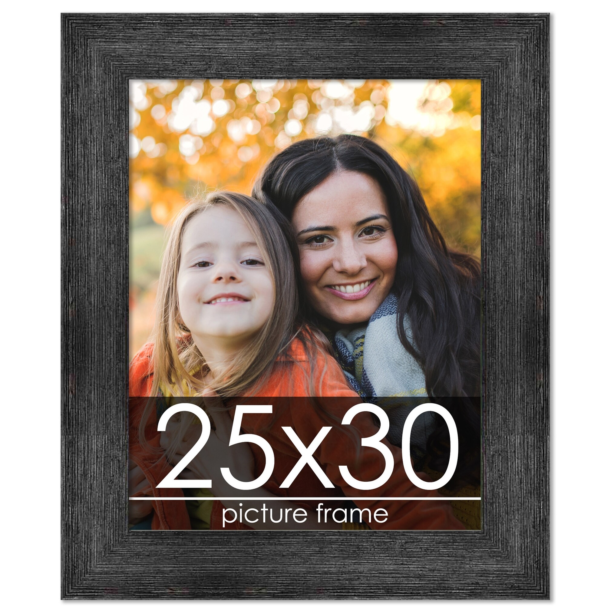 25x30 Distressed/Aged Black Wood Picture Frame - UV Acrylic, Foam Board Backing, & Hanging Hardware Included!
