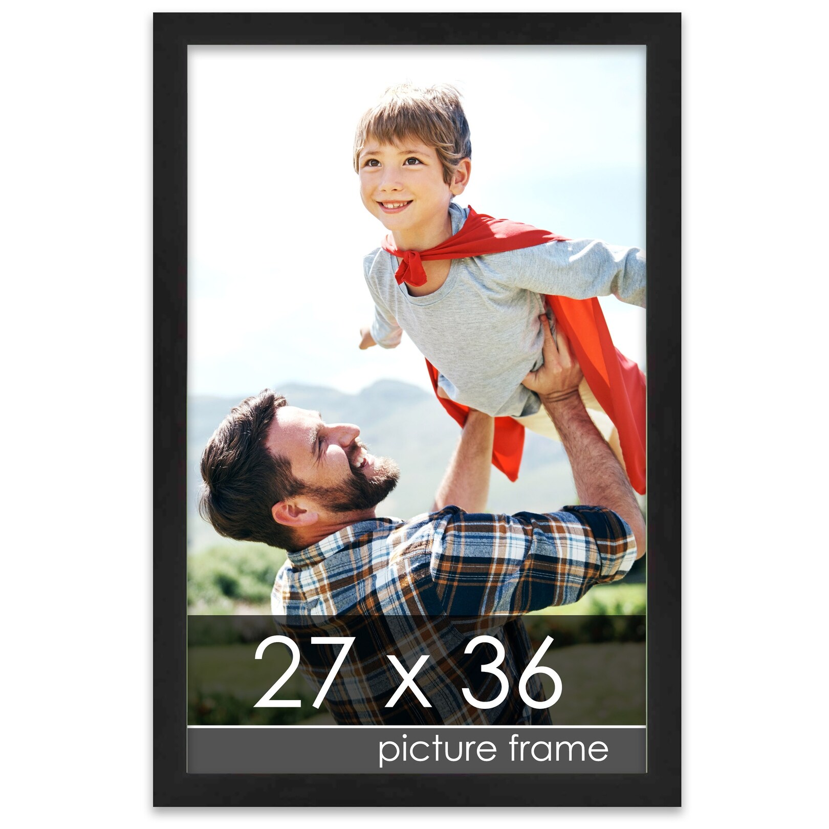 27x36 Contemporary Black Wood Picture Frame - UV Acrylic, Foam Board Backing, & Hanging Hardware Included!