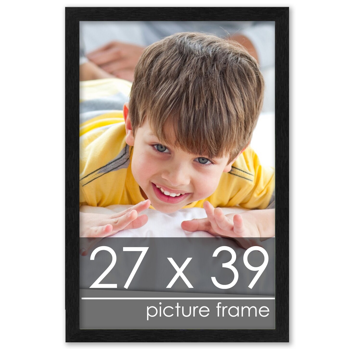 27x39 Traditional Black Wood Picture Frame - UV Acrylic, Foam Board Backing, & Hanging Hardware Included!