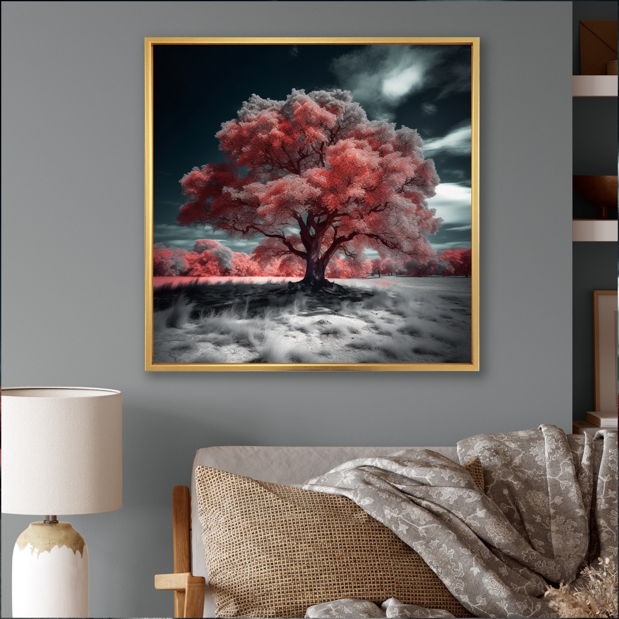 Designart "Red Tree Winter Haven" Tree Floral Framed Canvas Art Print