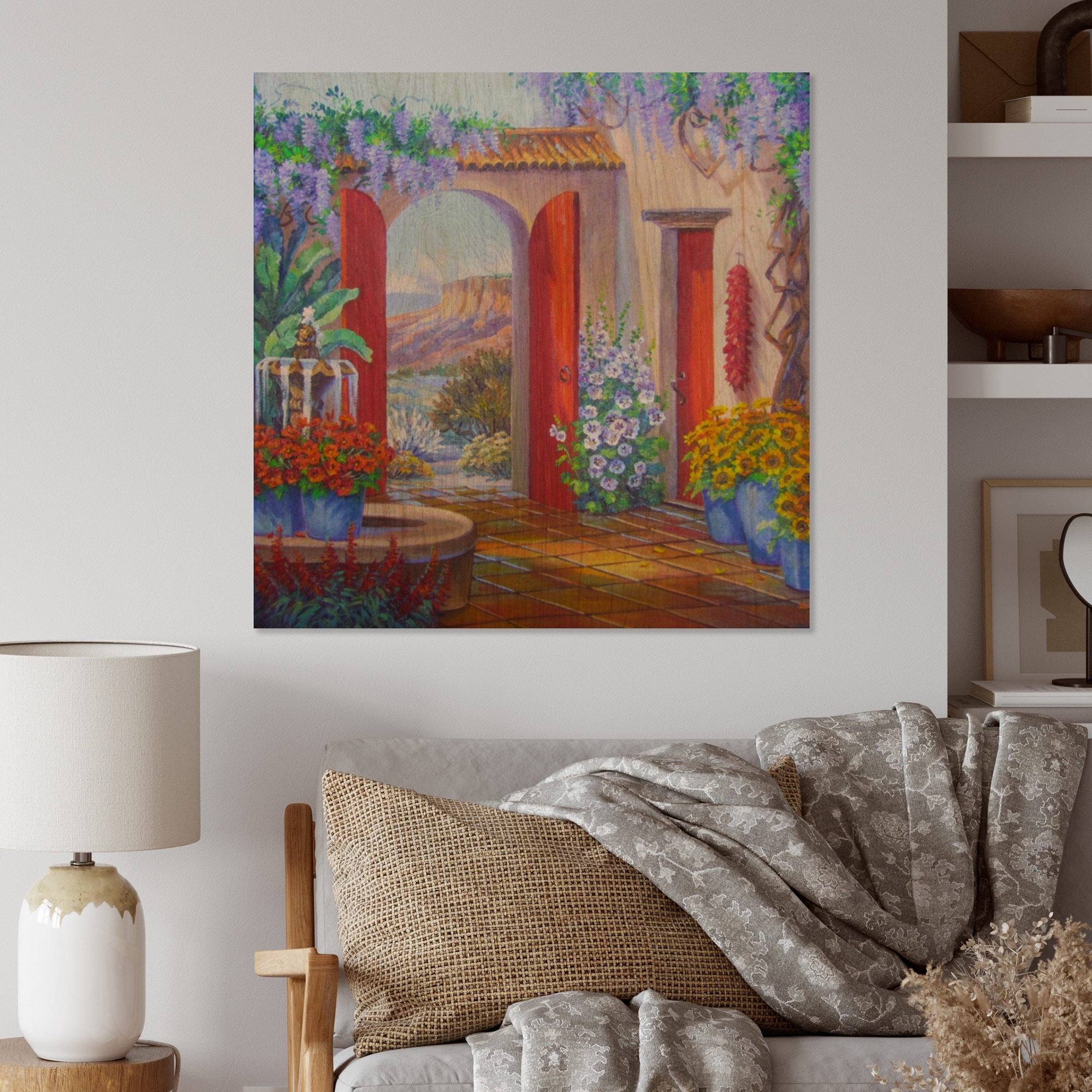Designart 'The Door Into the Haven' Traditional Wood Wall Art - Natural Pine Wood