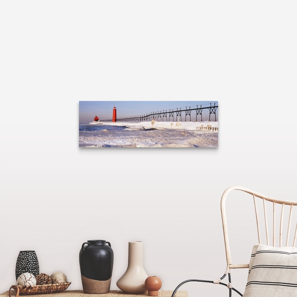 "Lighthouse near a pier, Grand Haven, Michigan" Canvas Wall Art