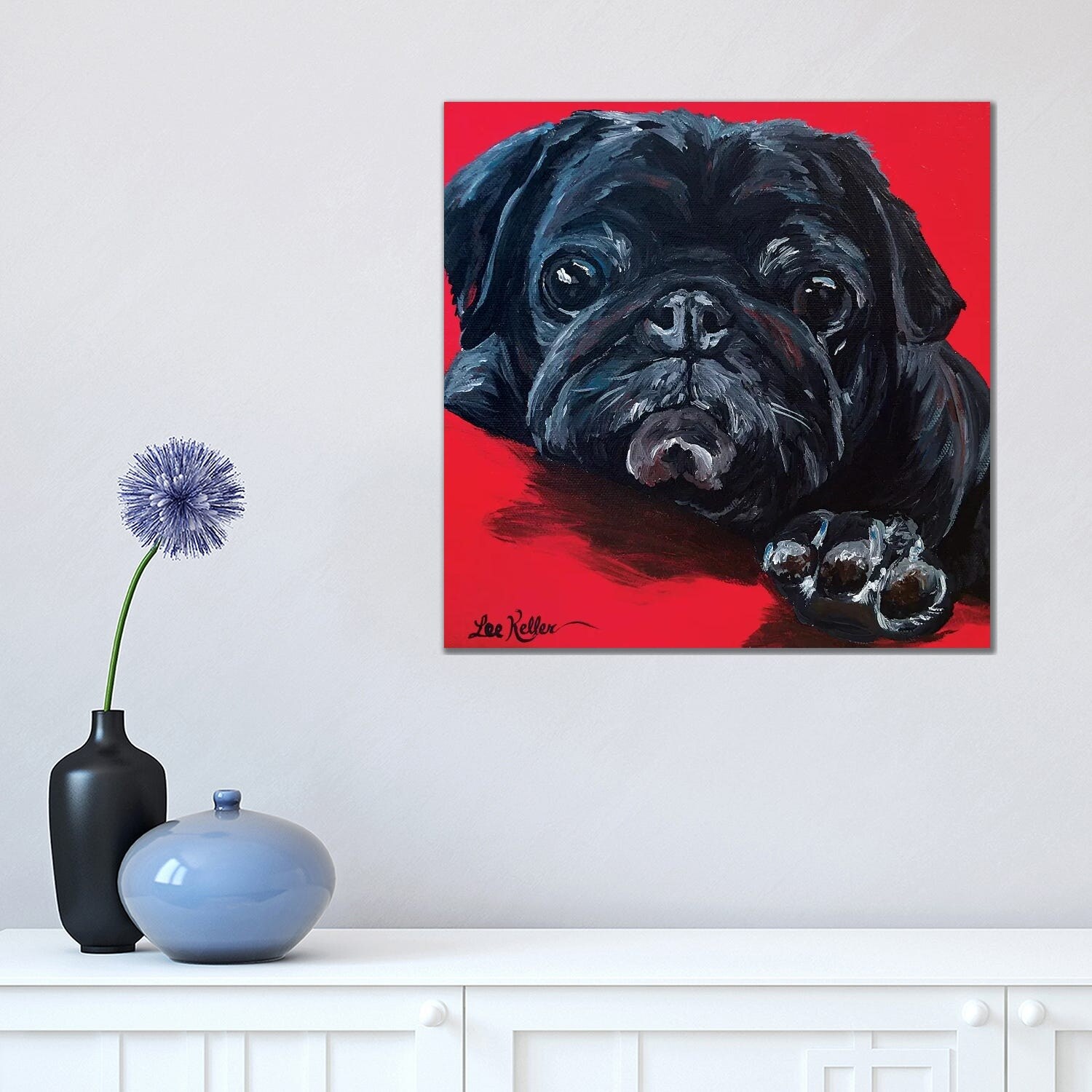 iCanvas "Pug On Red" by Hippie Hound Studios Canvas Print