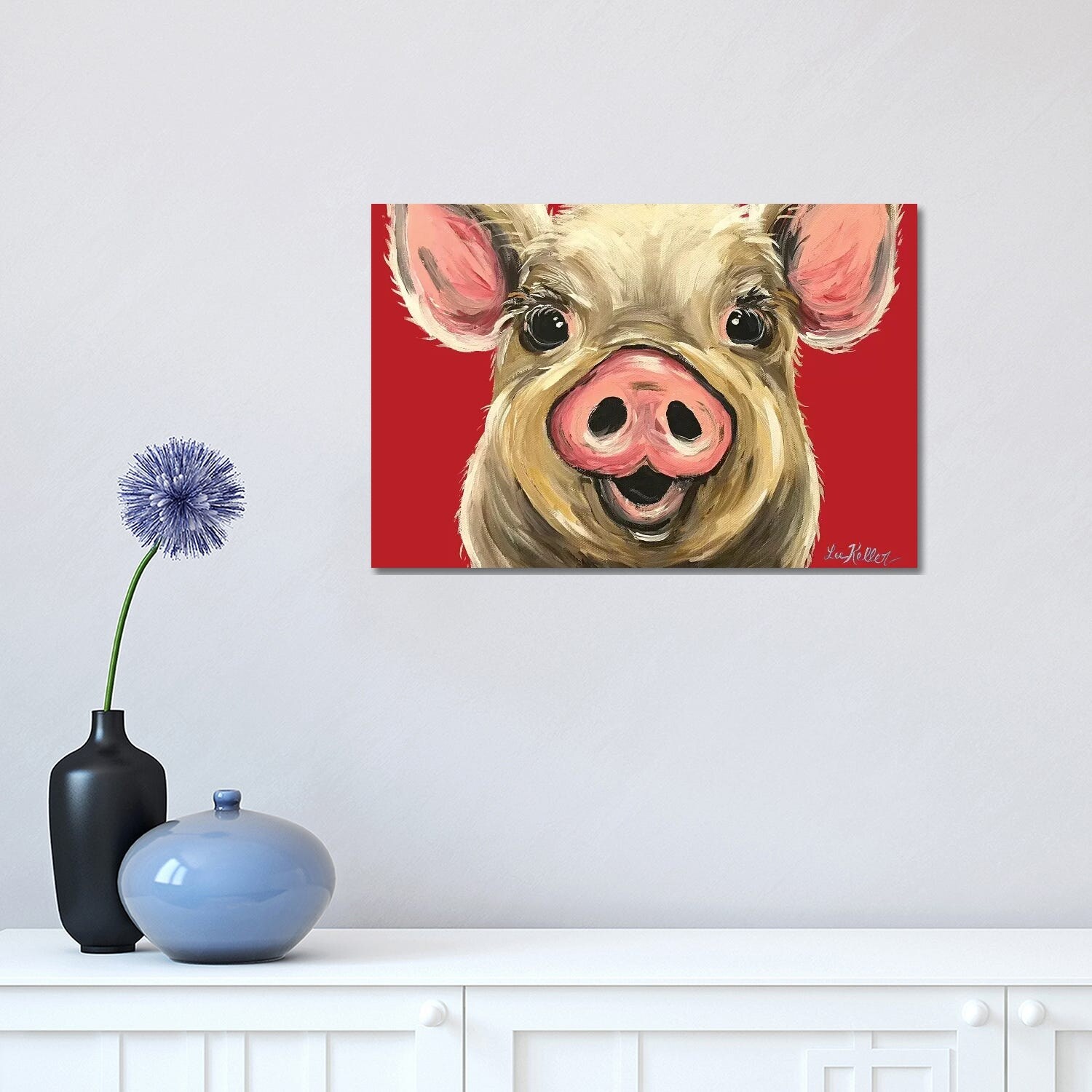 iCanvas "Pig Rosie on Red" by Hippie Hound Studios Canvas Print