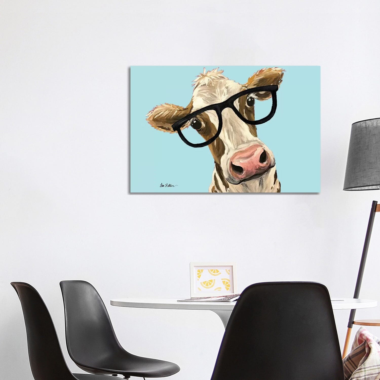 iCanvas "Cow Miss Moo Moo With Glasses on Turquoise" by Hippie Hound Studios Canvas Print