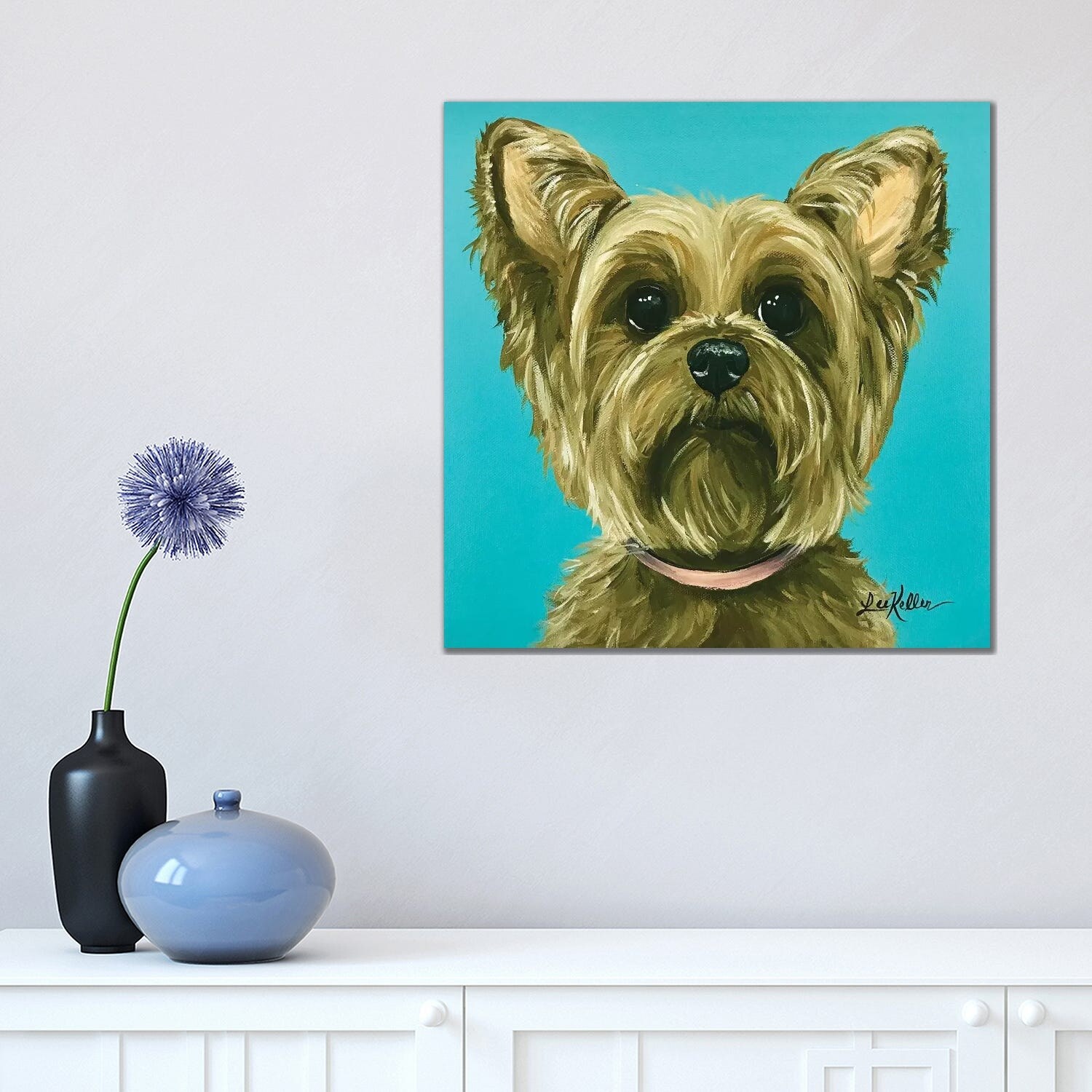 iCanvas "Yorkie On Aqua" by Hippie Hound Studios Canvas Print