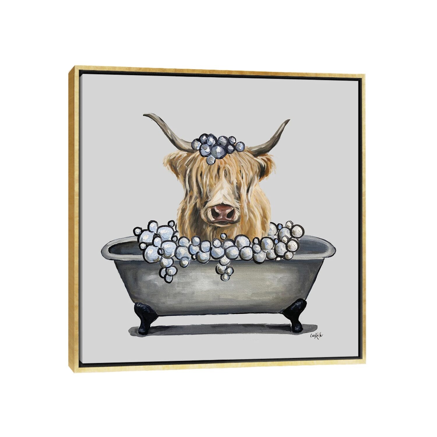 iCanvas "Animals In the Tub Series, Highland Cow in Bathtub" by Hippie Hound Studios Framed Canvas Print