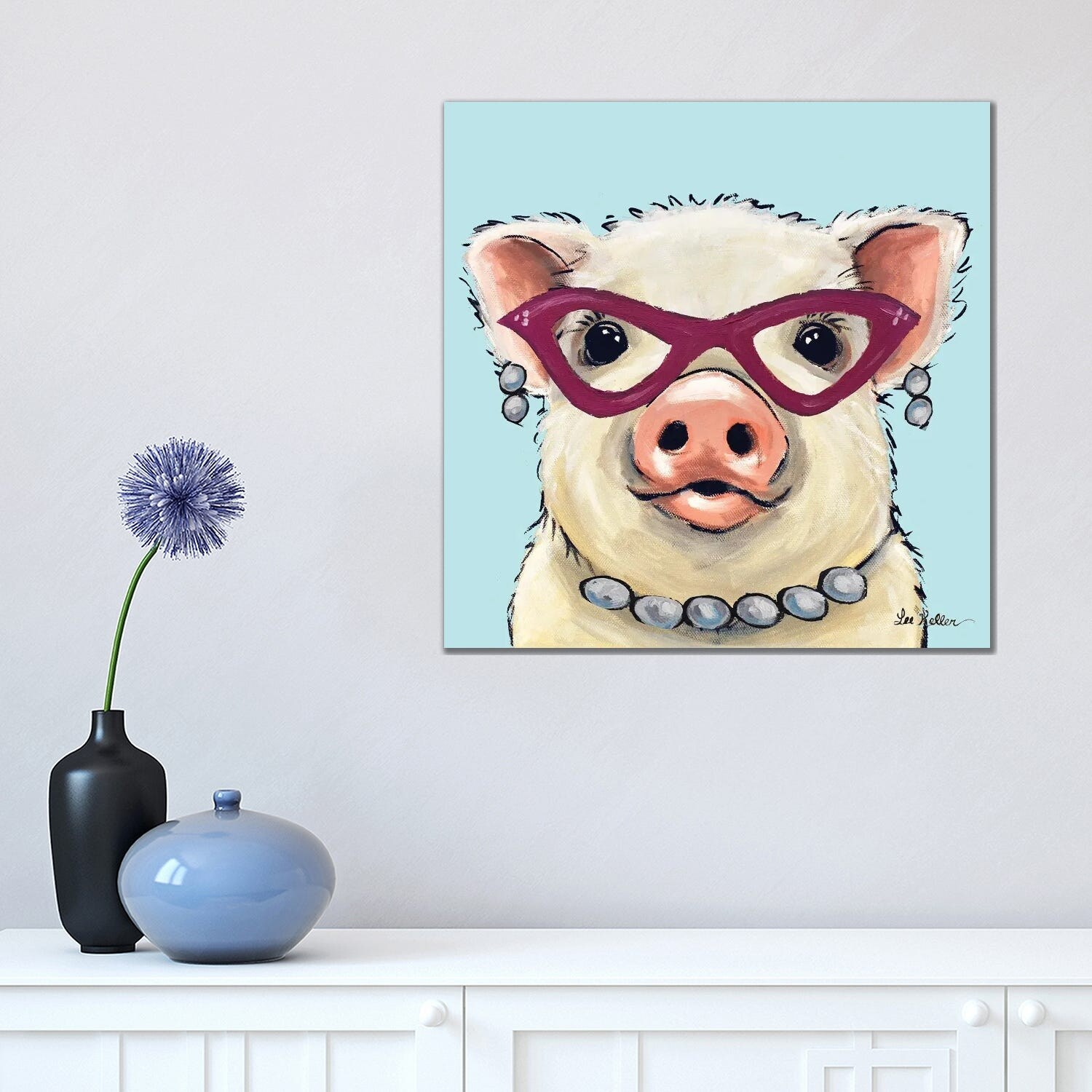 iCanvas "Rosey The Pig With Glasses" by Hippie Hound Studios Canvas Print