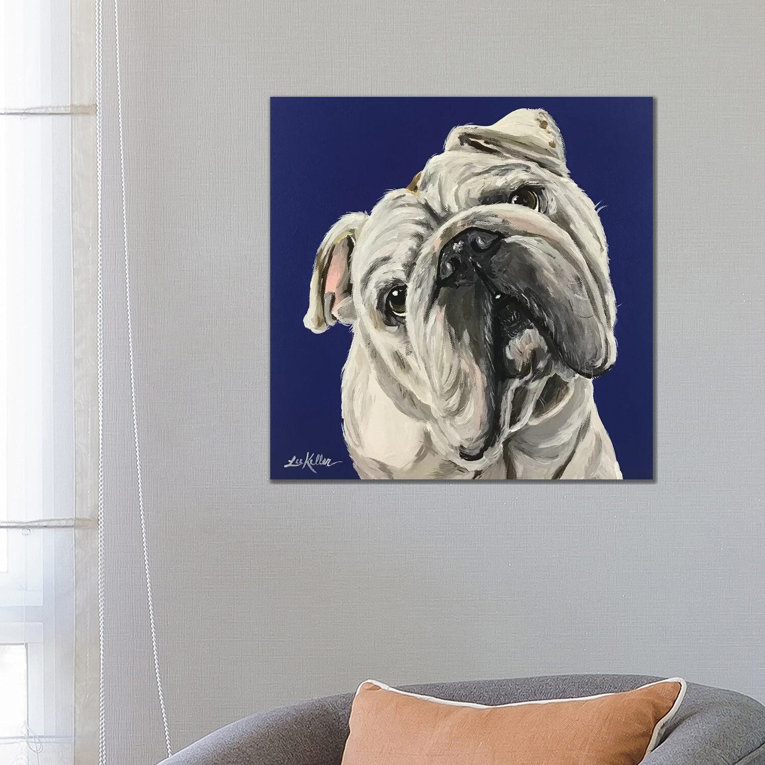 iCanvas "English Bulldog on Blue" by Hippie Hound Studios Canvas Print