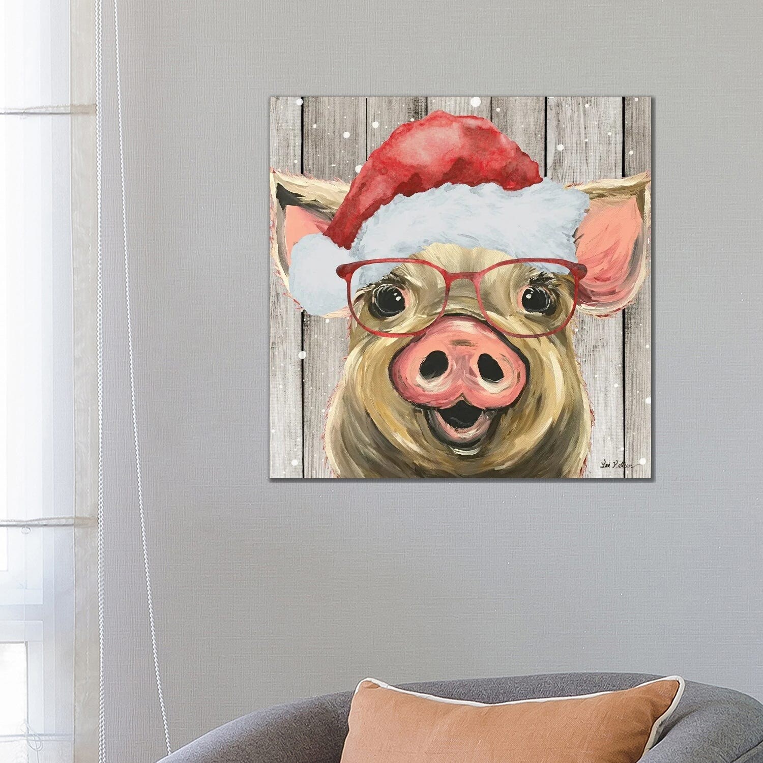 iCanvas "Farmhouse Christmas Pig 'Posey'" by Hippie Hound Studios Canvas Print