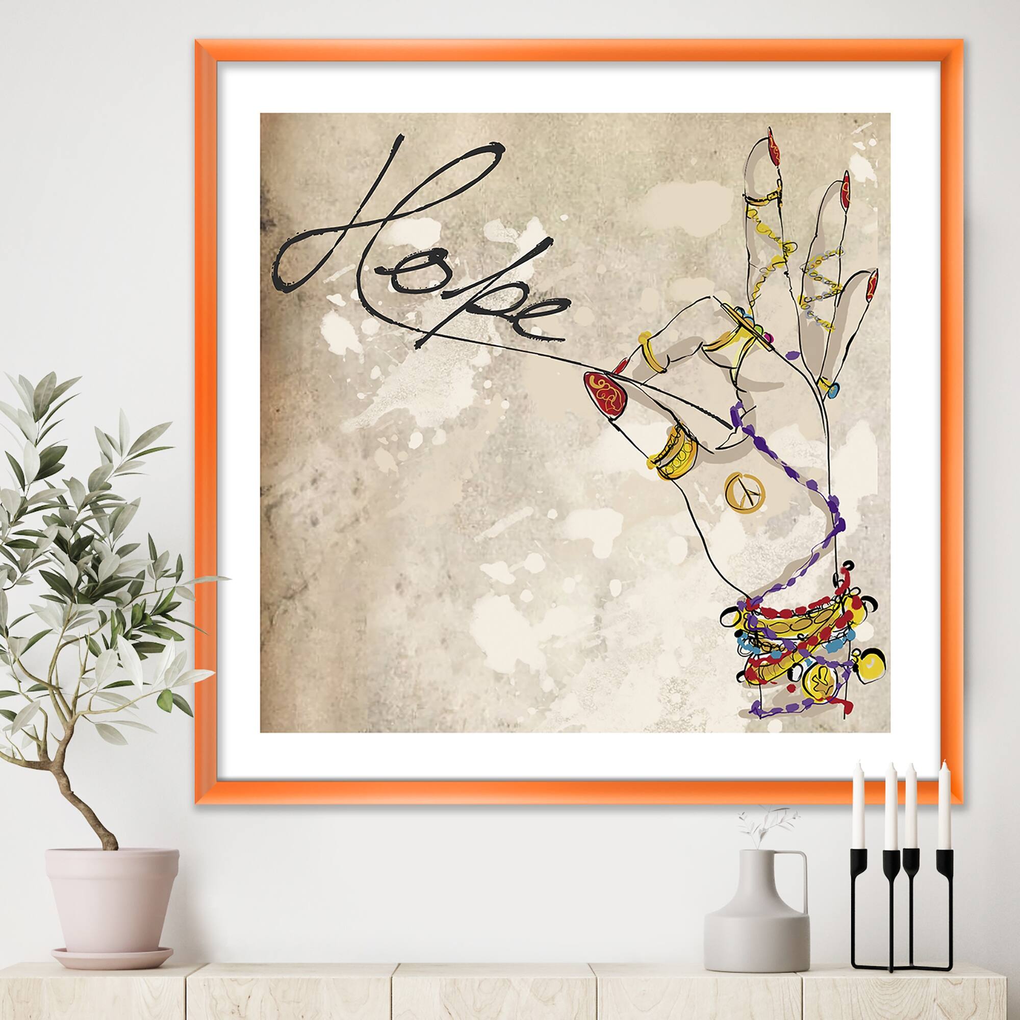 Designart "Gypsy Hippy Hand Hope" Cottage Premium Framed Art Print
