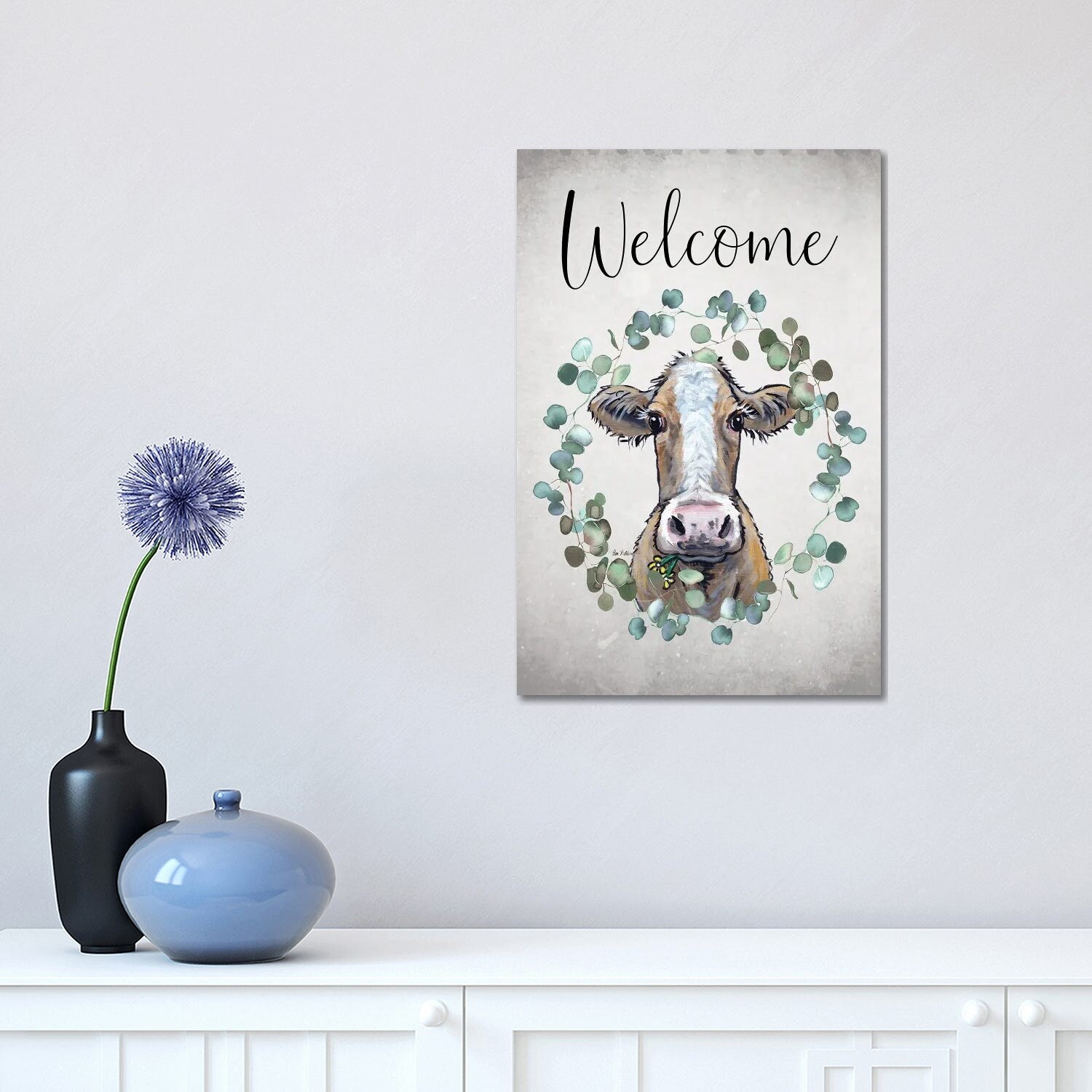 iCanvas "Cow Welcome Sign, Farmhouse Cow Art" by Hippie Hound Studios Canvas Print