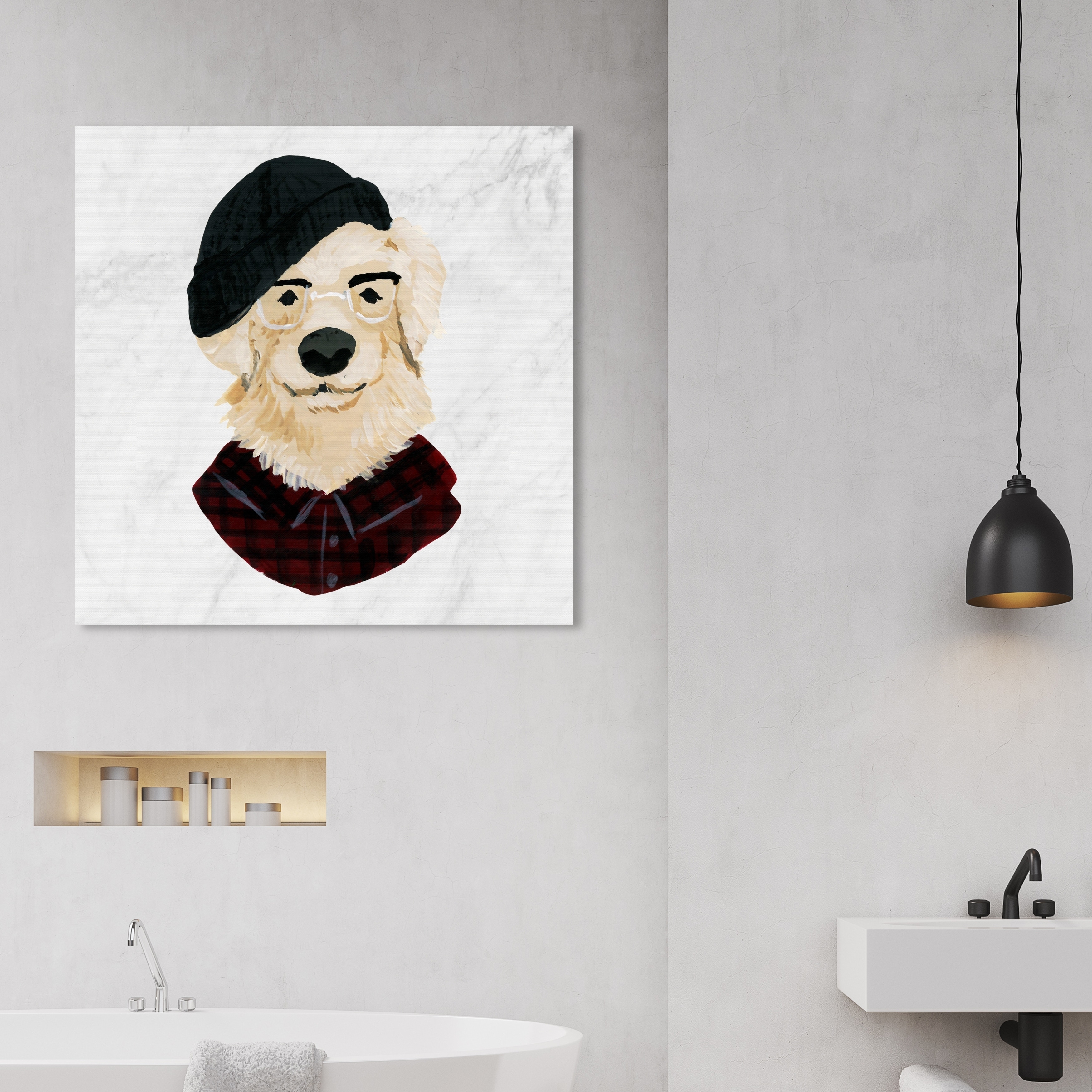 Oliver Gal 'Hipster Golden Pup' Animals Wall Art Canvas Print - Black, Brown