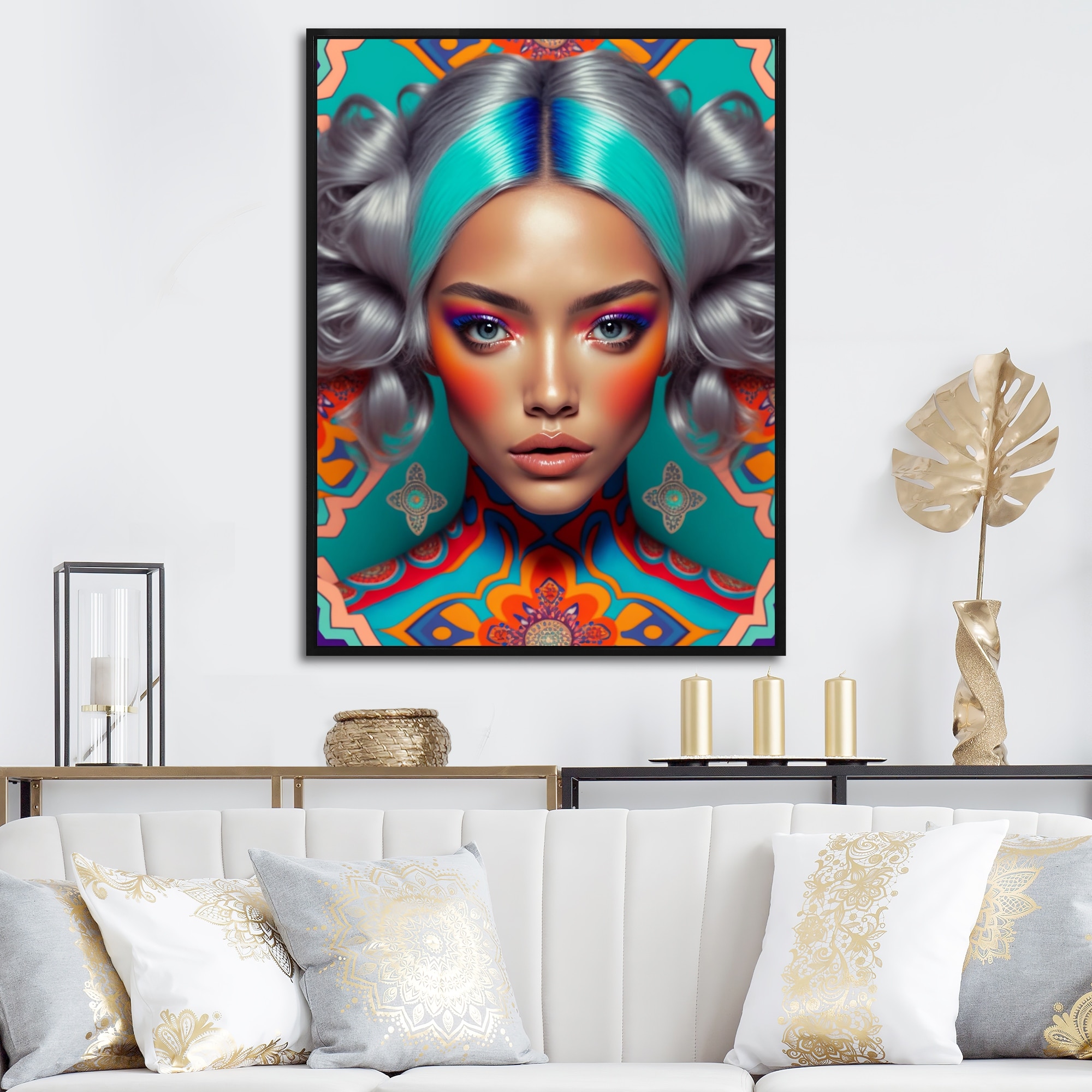 Designart "Retrofuturistic Contemporary Hipsters VII" Woman Pop Art Framed Wall Art Living Room