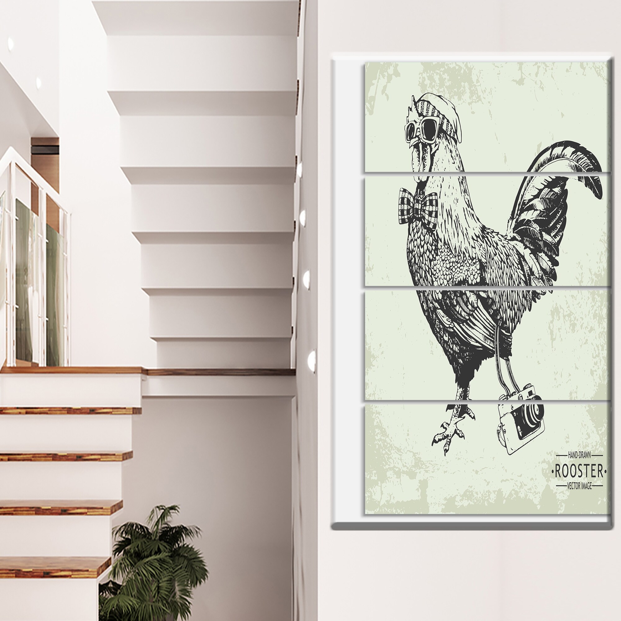 Designart "Handdrawn vintage hipster style rooster" Farmhouse Animal Print on Wrapped Canvas set