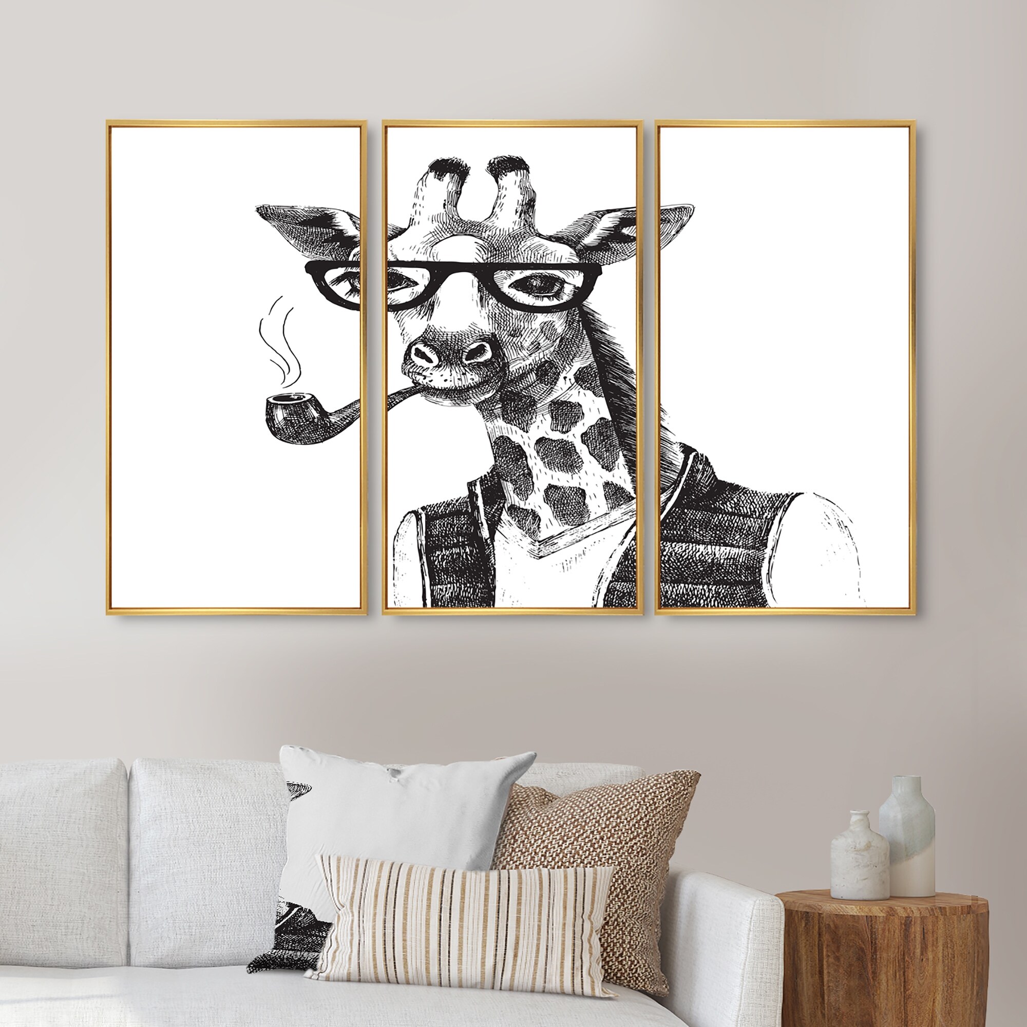 Designart "Portrait Of Giraffe Hipster" Traditional Framed Art Prints Set of 3 - 4 Colors of Frames