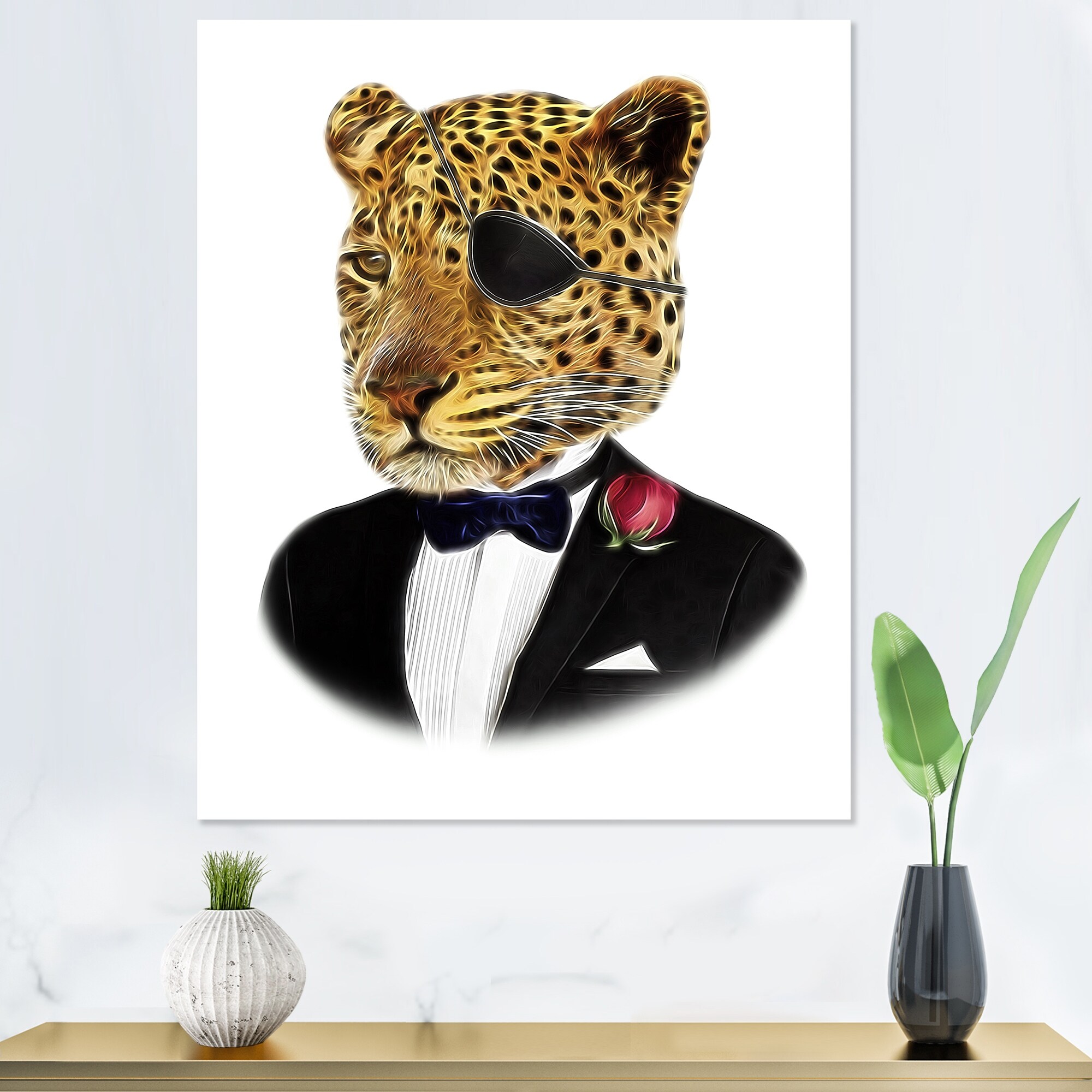 Designart "Hipster Stylish Leopard Head" Children's Art Framed Canvas Wall Decor