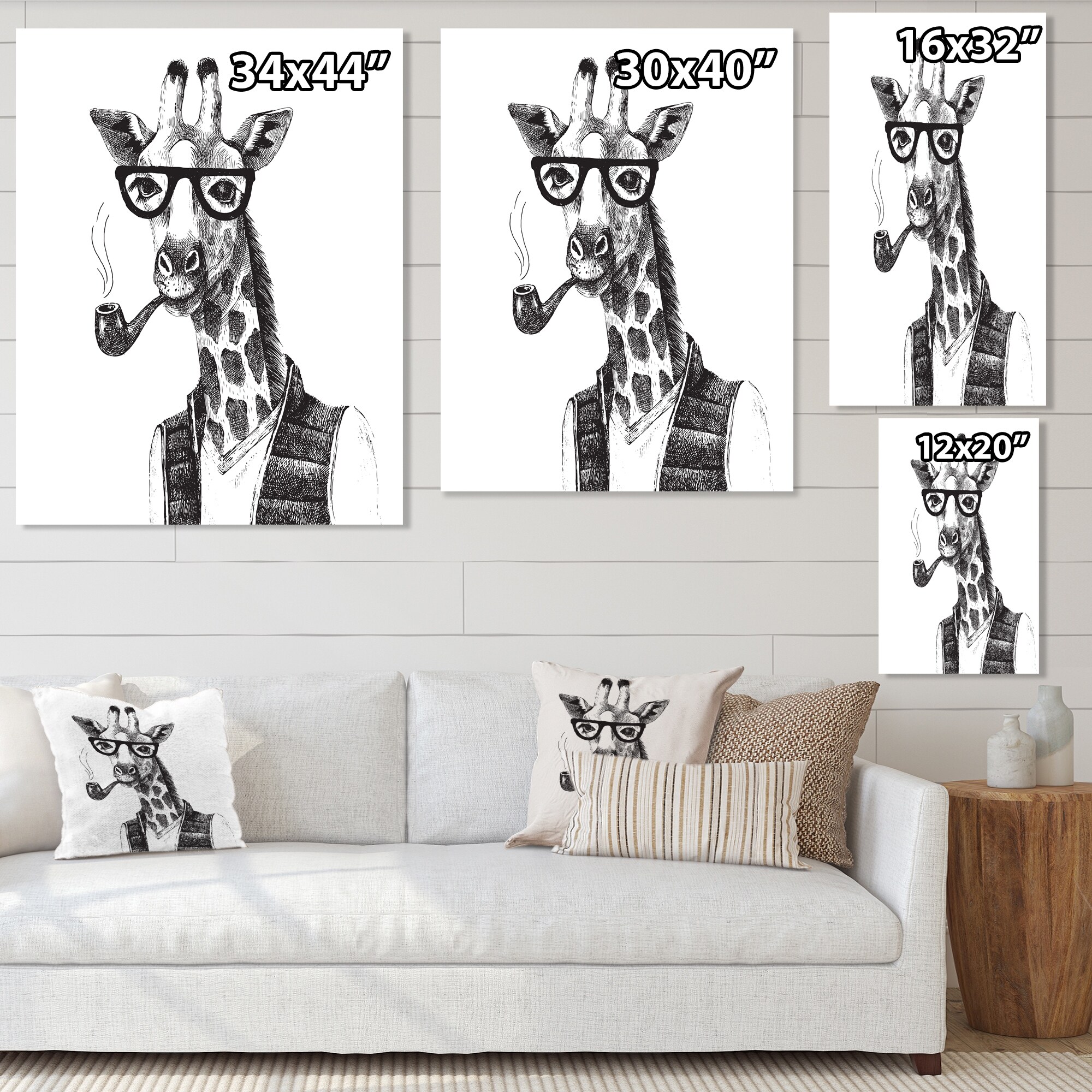 Designart "Portrait Of Giraffe Hipster" Traditional Canvas Wall Art Print
