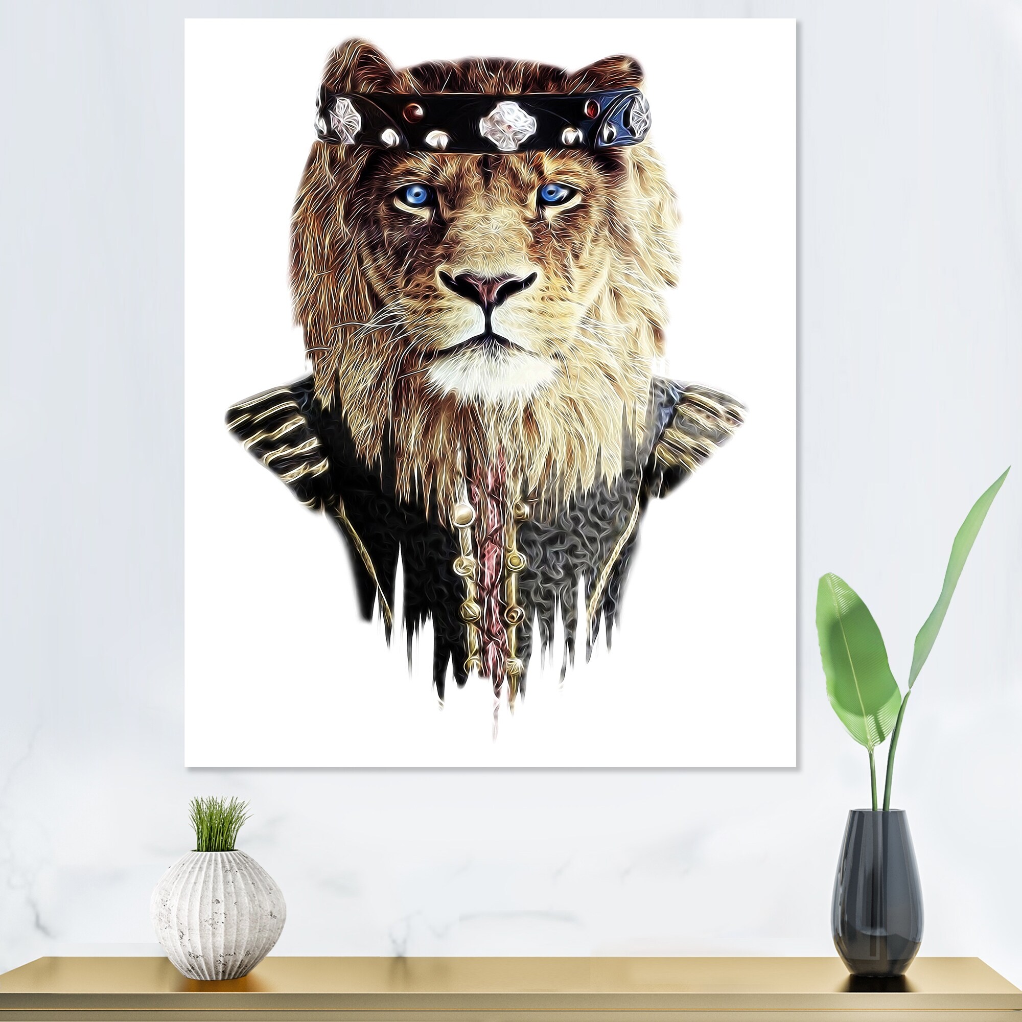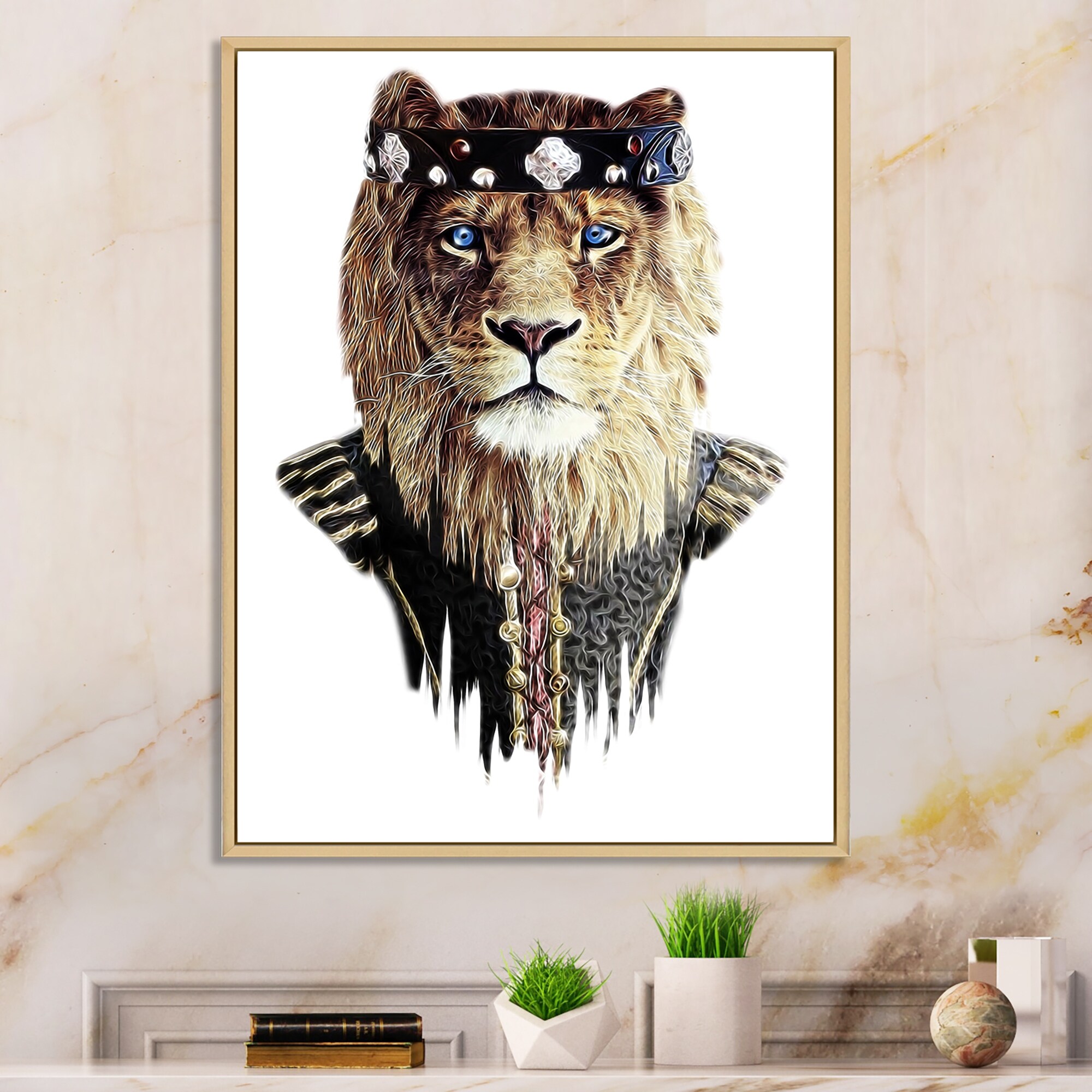 Designart "Hipster Lion King Head" Children's Art Framed Art Print