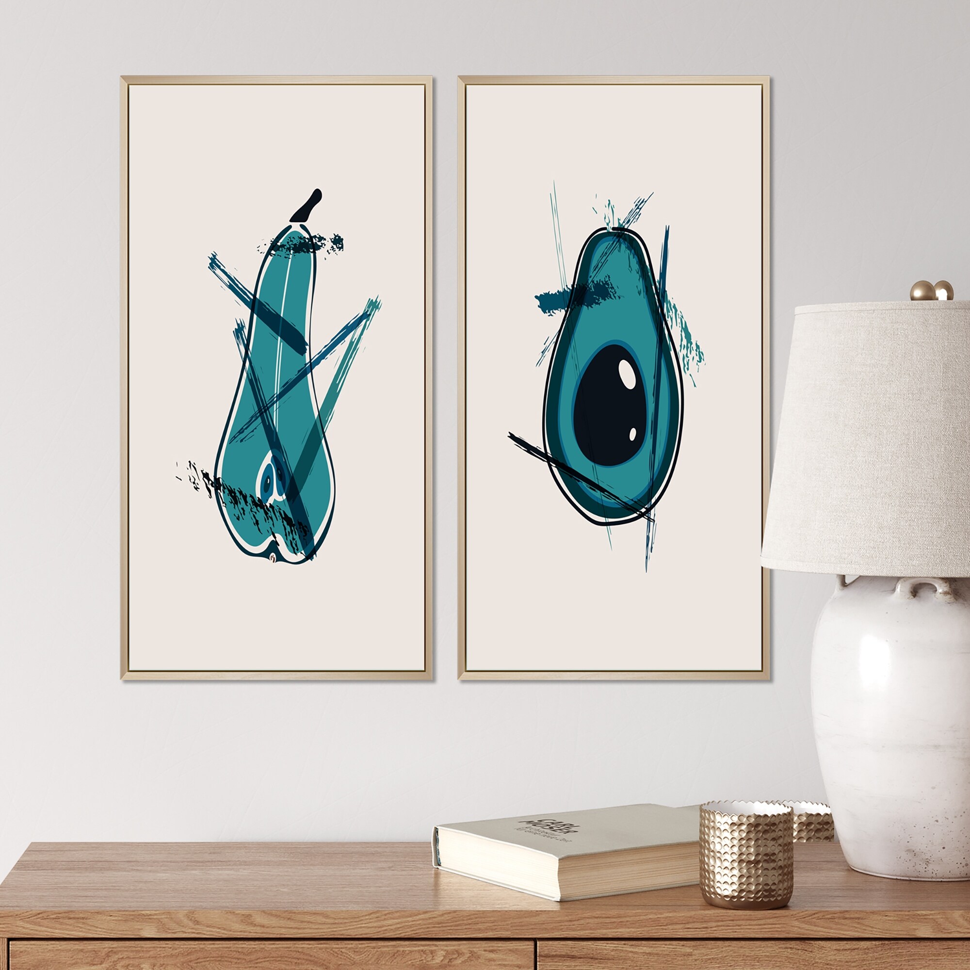 Designart "Organic Vintage Hipster Fruits I" Cottage Framed Art Set of 2 Pieces