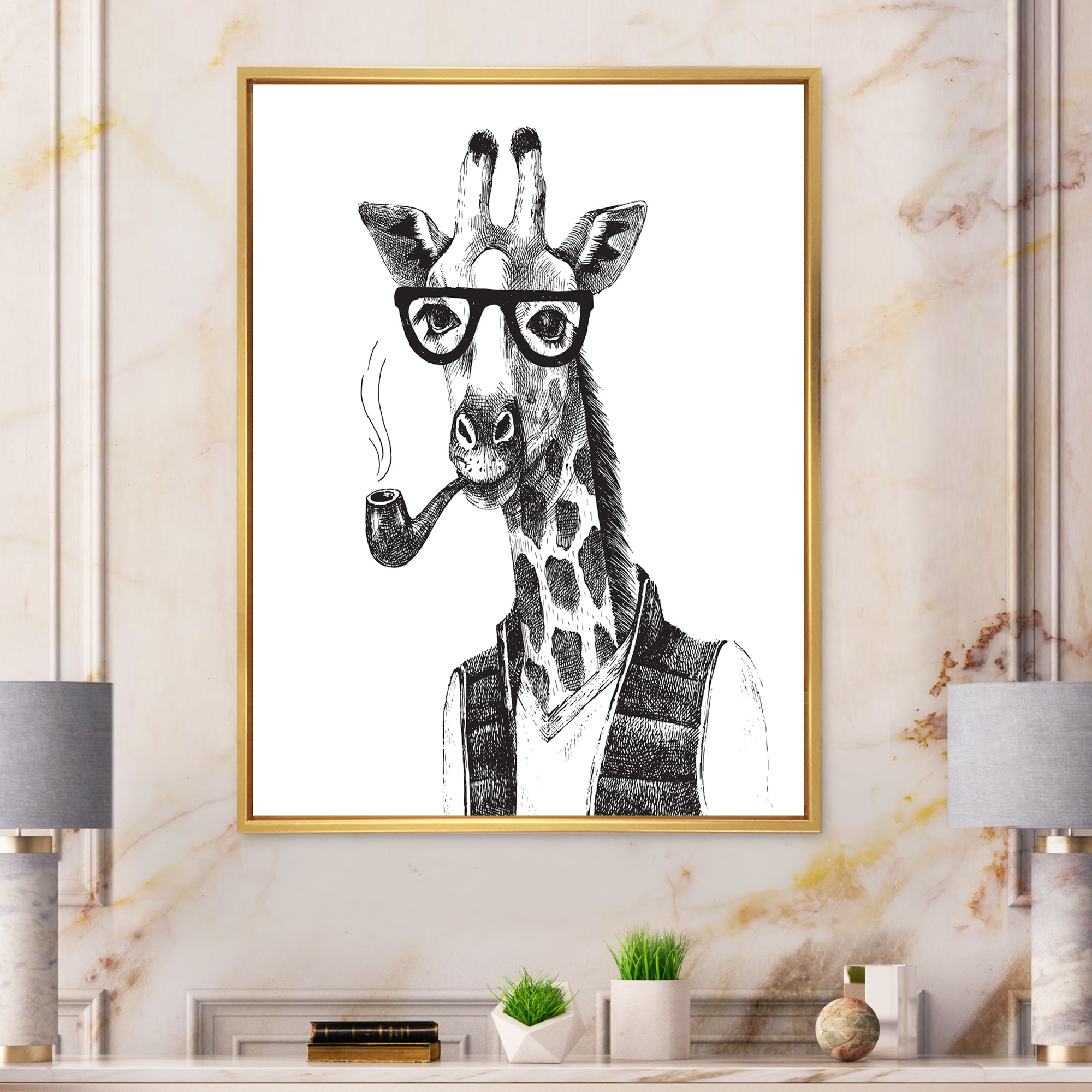 Designart "Portrait Of Giraffe Hipster" Traditional Framed Canvas Wall Art Print