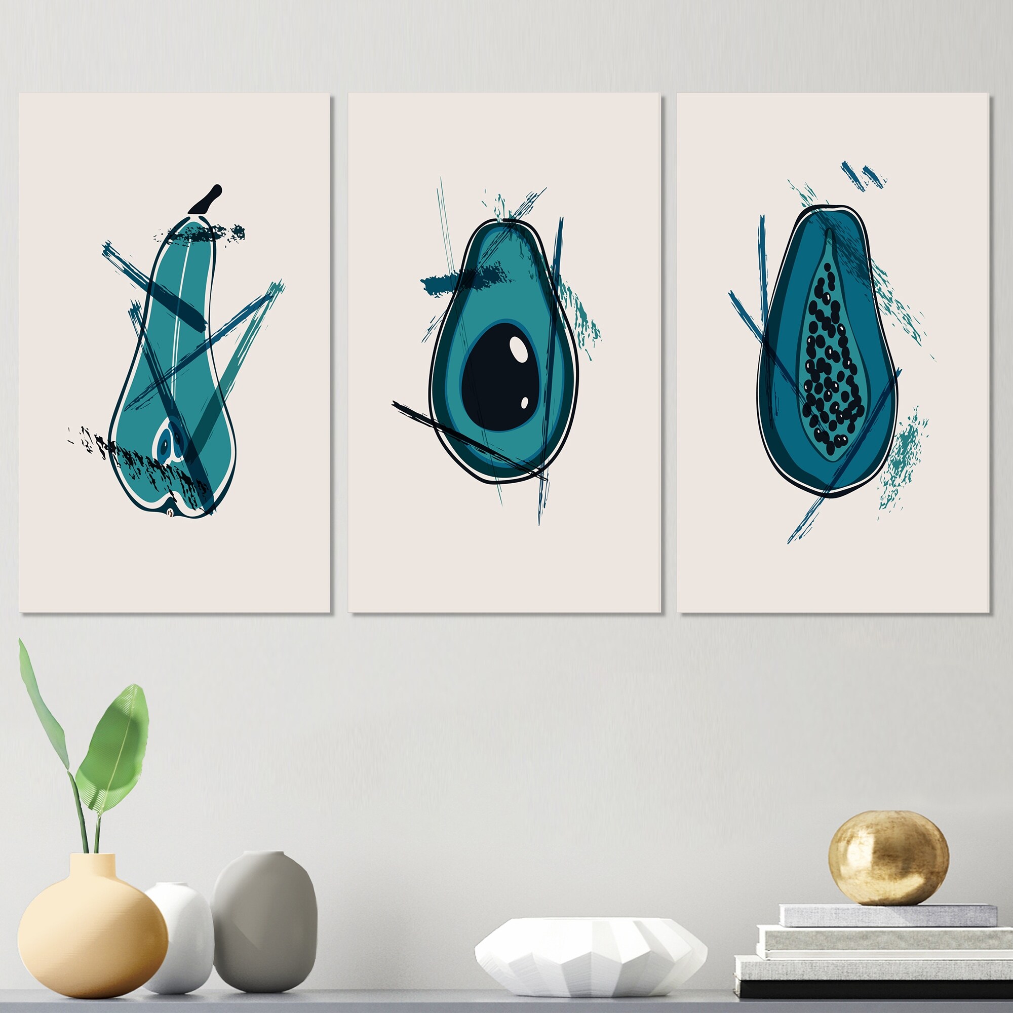Designart 'Organic Vintage Hipster Fruits I' Mid-Century Modern Art Set of 3 Pieces