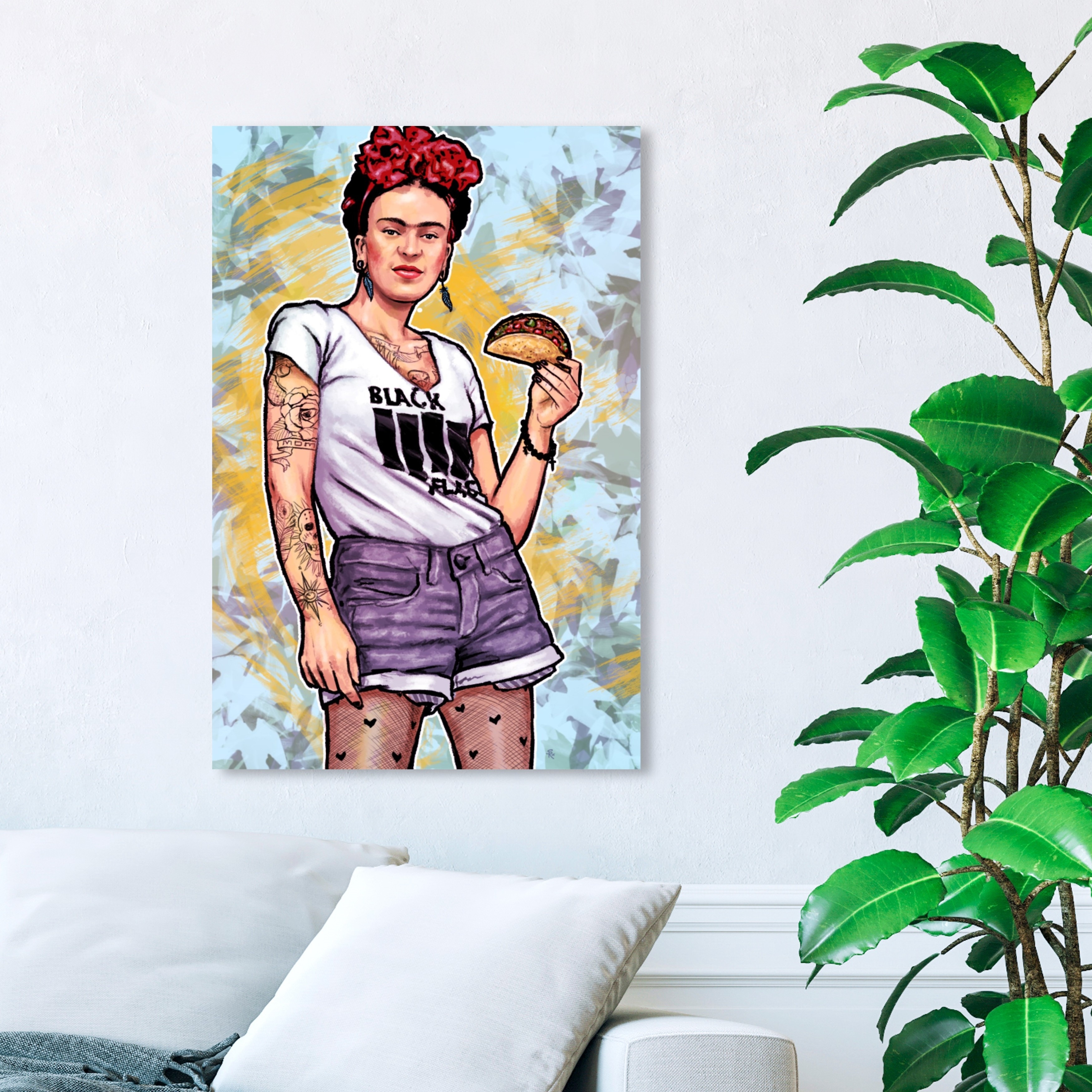 Wynwood Studio 'Hipster Frida' People and Portraits Wall Art Canvas Print Celebrities - Yellow, Purple