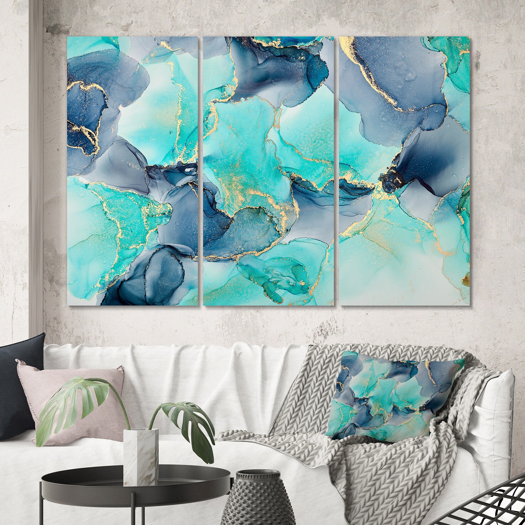 Designart "Turquoise Luxury Abstract Fluid Art IV" Modern Canvas Wall Art Print