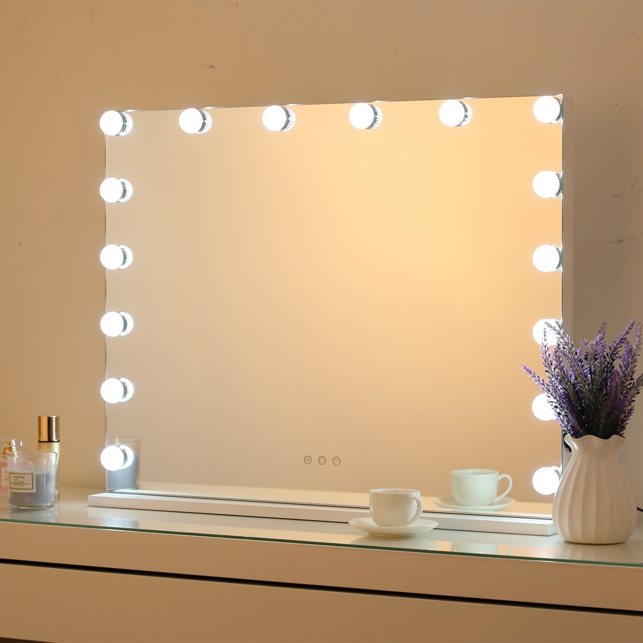 Hollywood Vanity Mirror with 16 Lights, White - 70 x 55 cm