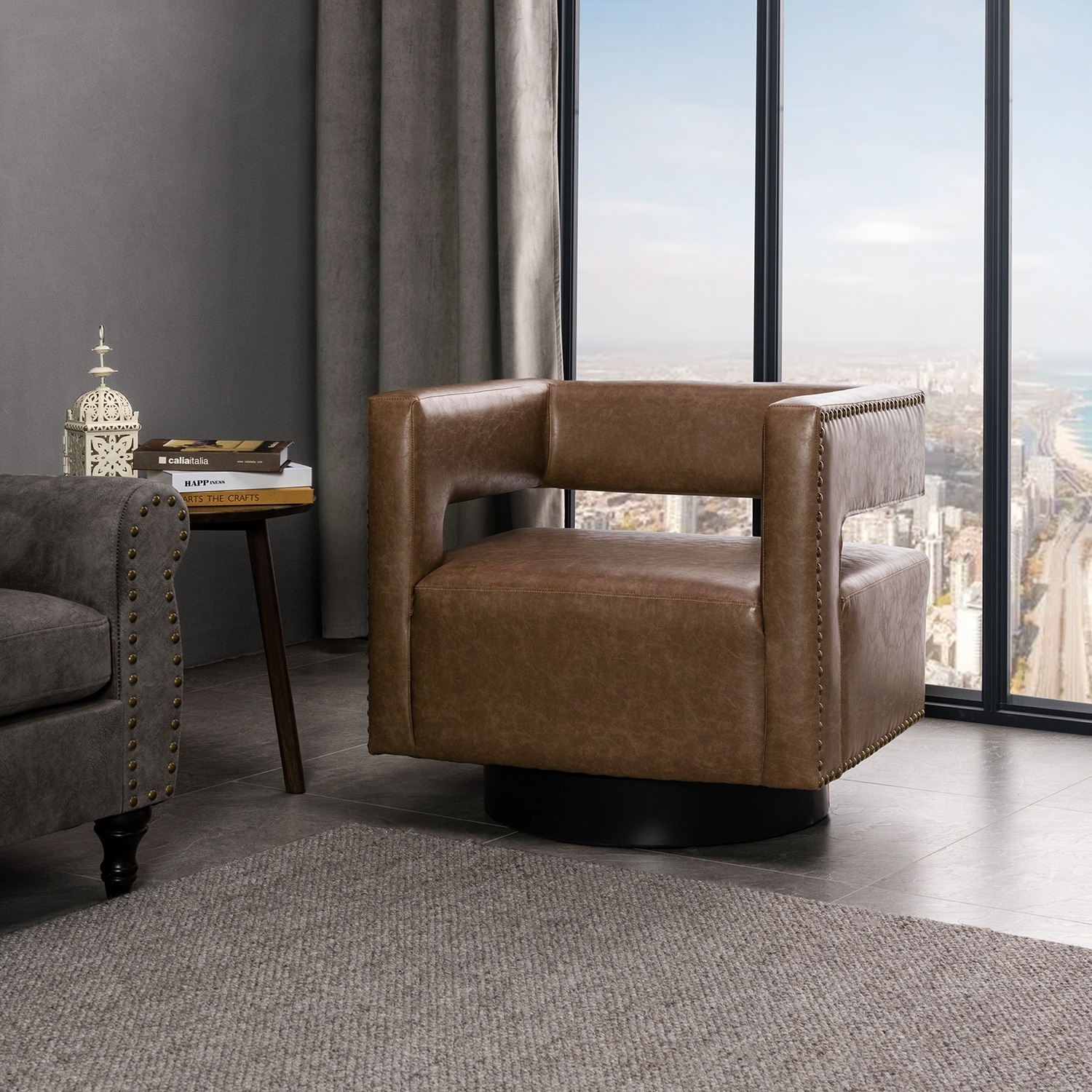Bortolotti Contemporary Upholstery Swivel Nailhead Trim Barrel Chair with Open Back and Metal Base by HULALA HOME