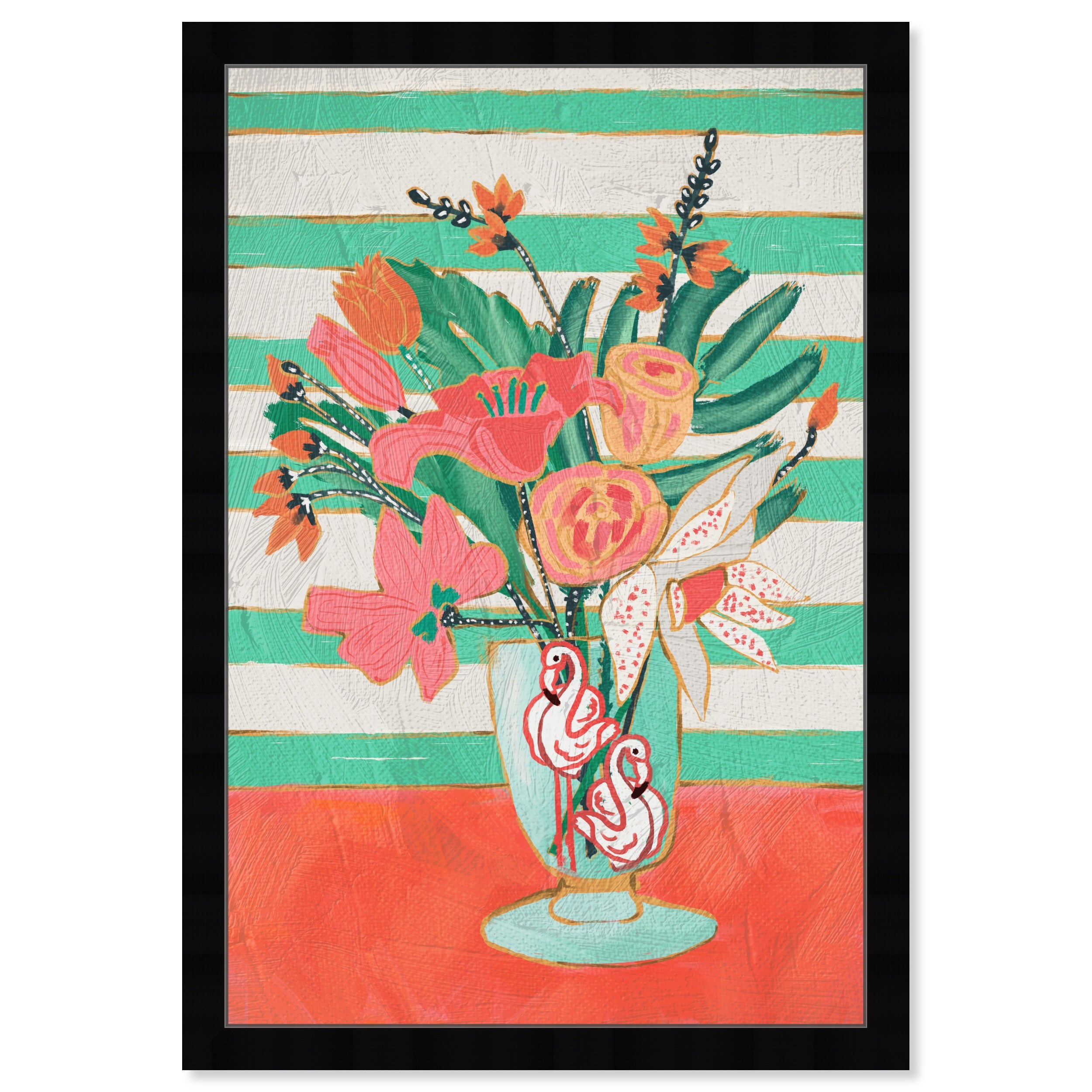 Oliver Gal 'Glam Floral Bouquet in Flamingo Base' Framed Canvas Art Print