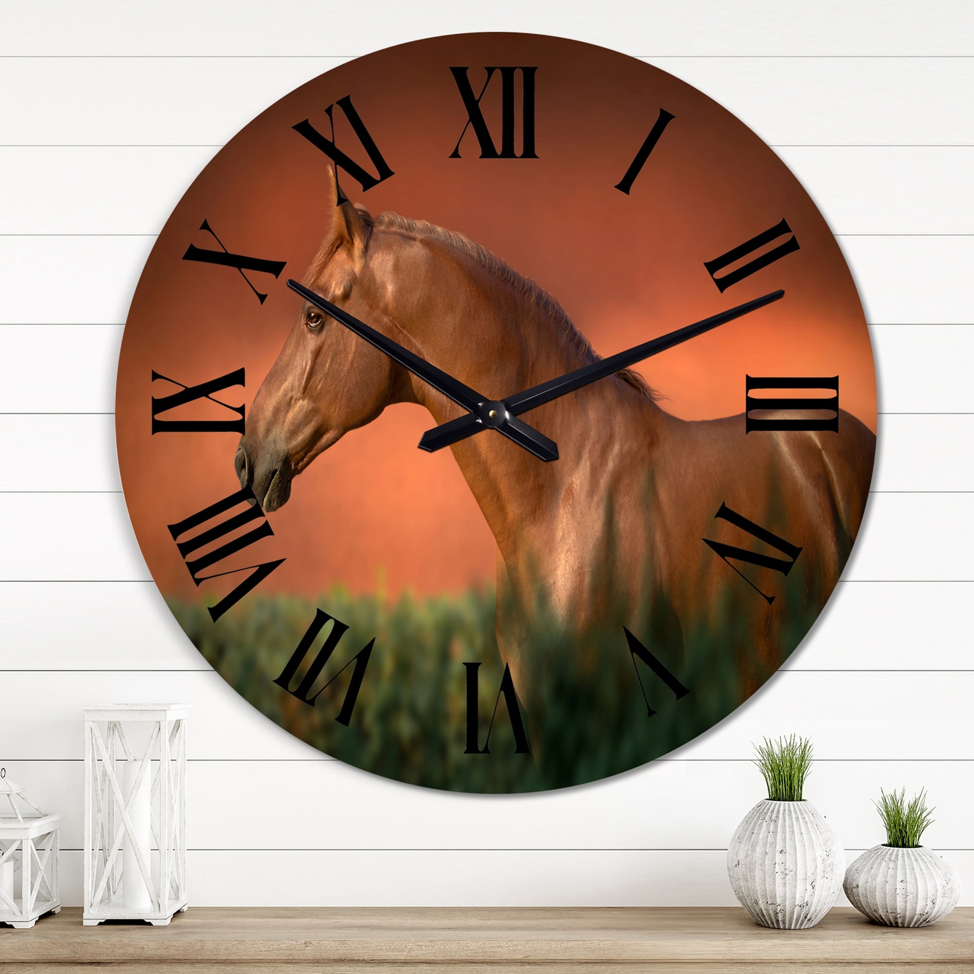 Designart 'Portrait Of the Chestnut Thoroughbred Horse I' Traditional wall clock